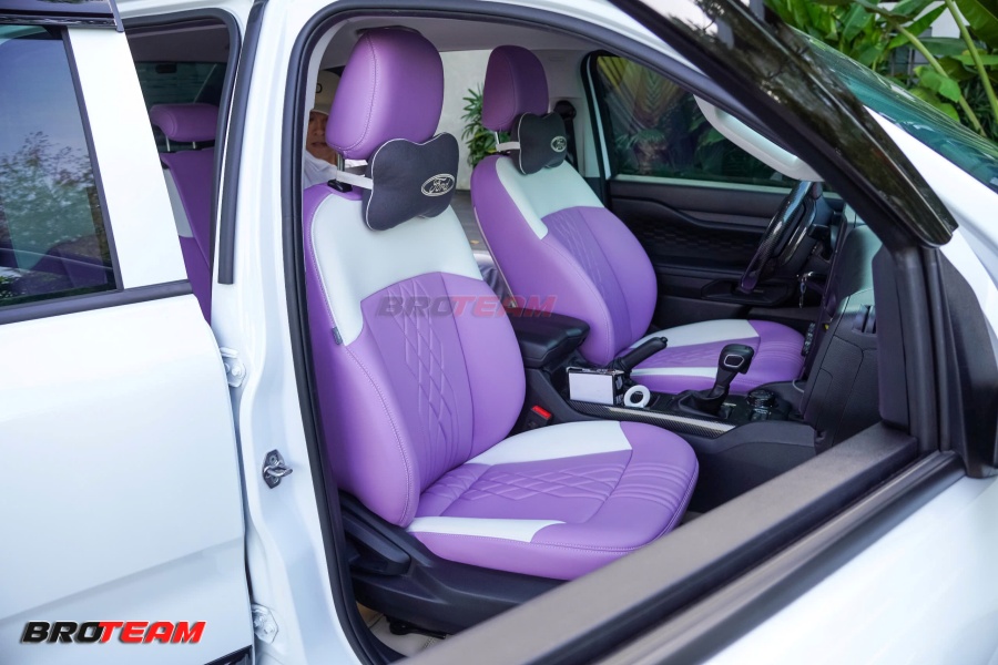 Bọc ghế da phong cách Raptor, thảm lót sàn 360 Full da, tạo sự sang trọng và dễ vệ sinh.