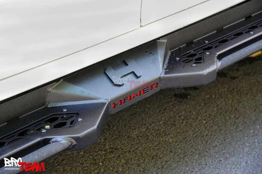 Tăng thẩm mỹ & phong cách: Kiểu dáng hầm hố, bề mặt sơn tĩnh điện đen mờ, logo Hamer nổi bật cùng đèn LED tích hợp tạo hiệu ứng hiện đại, thể thao, phù hợp cả xe đi phố lẫn off-road hay du lịch.