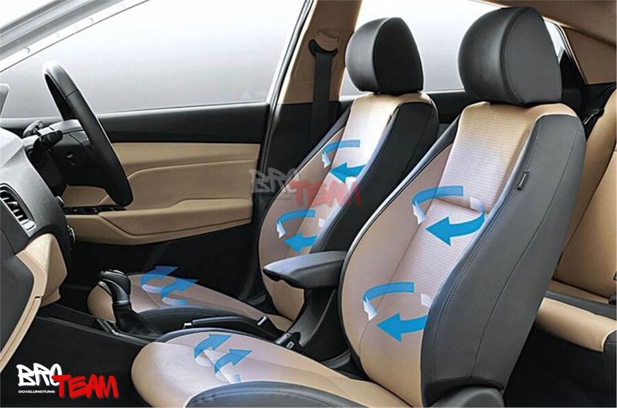 Làm mát hiệu quả: Hệ thống quạt hoặc luồng khí mát di chuyển bên trong ghế giúp hạ nhiệt độ bề mặt ghế, giảm thiểu tình trạng đổ mồ hôi và mang lại cảm giác mát mẻ dễ chịu cho người lái và hành khách, đặc biệt trong những chuyến đi dài.