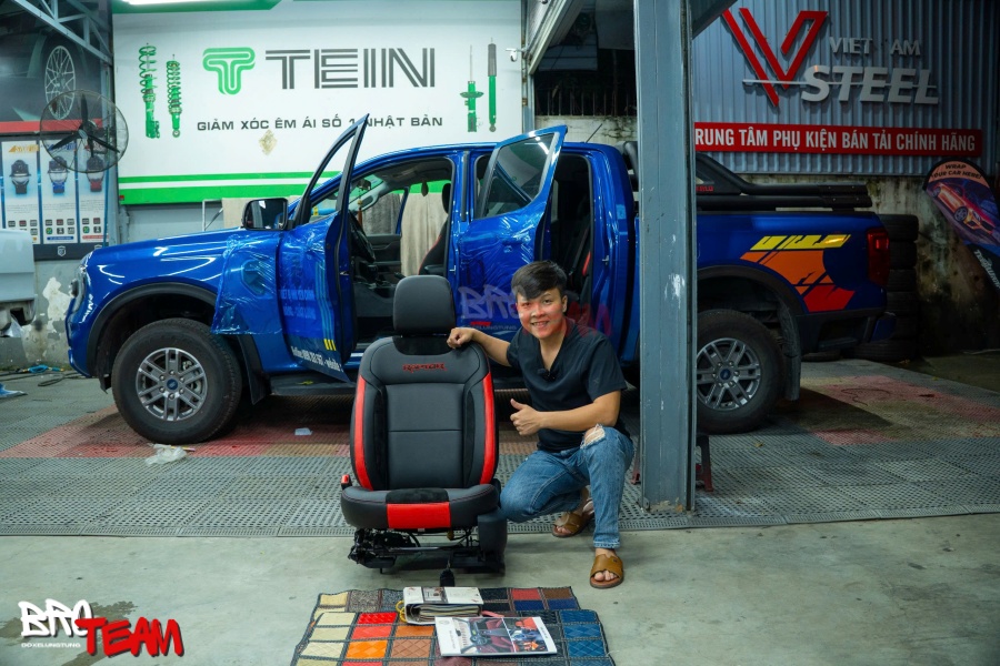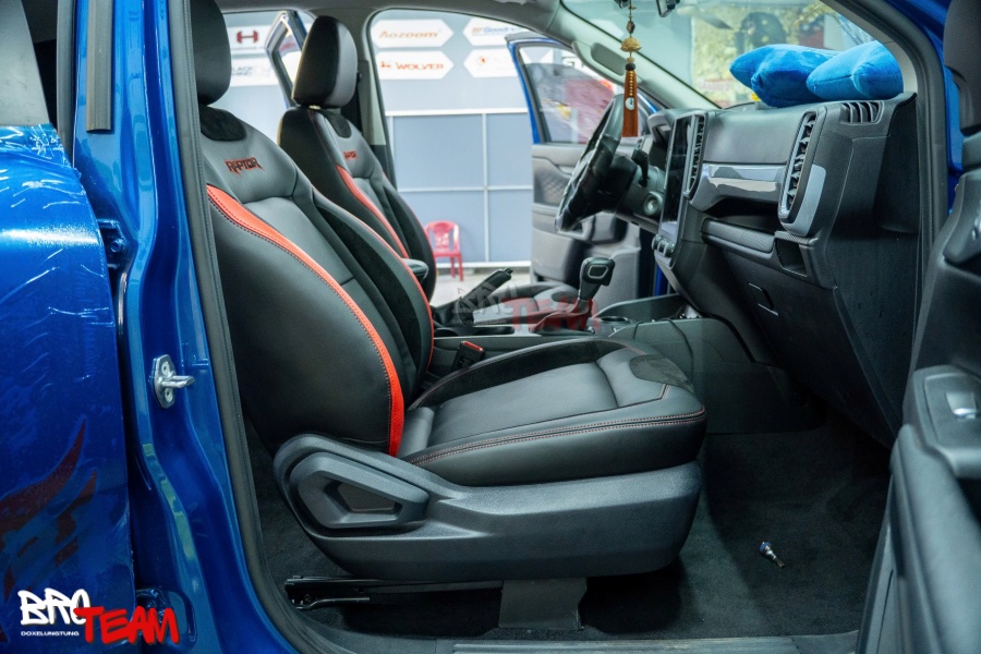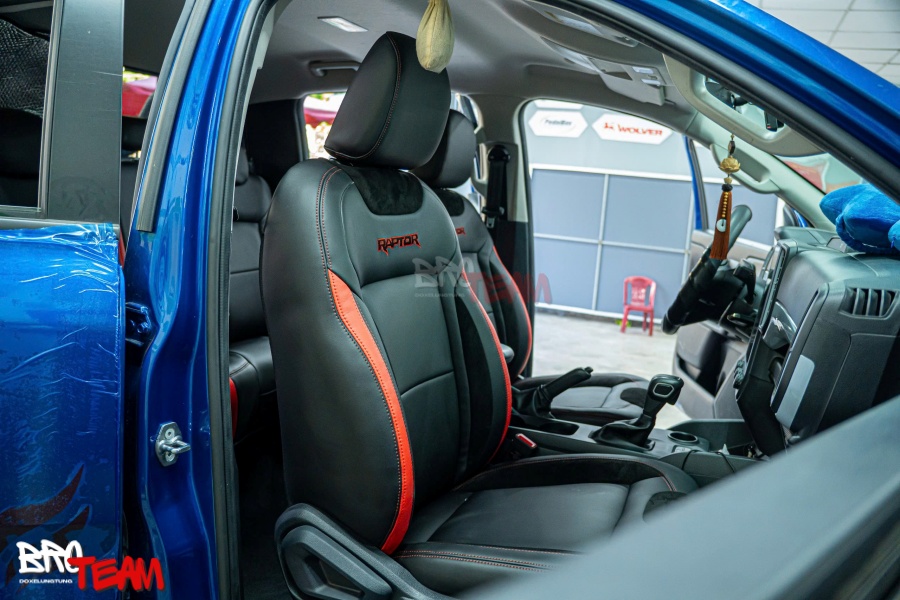 Bọc ghế da xe bán tải Ford Ranger Raptor mẫu da Nappa giúp nâng cấp không gian nội thất xe, mang lại sự sang trọng và tiện nghi vượt trội. Da Nappa cao cấp không chỉ có độ bền cao mà còn chống bám bẩn, dễ vệ sinh và không gây mùi hôi. Việc bọc ghế da cũng tạo cảm giác thoải mái, không bị nóng bức, đồng thời thể hiện phong cách cá nhân với màu sắc và chất liệu tùy chọn. Để nâng cấp cho xe của bạn, hãy đến ngay xưởng độ xe BRO TEAM để nhận sự tư vấn và dịch vụ chất lượng nhất.