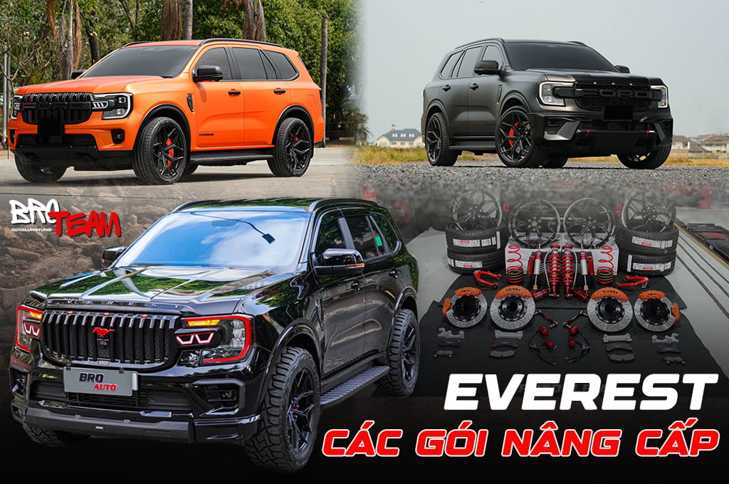 Các gói nâng cấp Ford Everest 2025 mới nhất giúp chiếc xe của bạn trở nên nổi bật, đậm chất riêng và vận hành mượt mà hơn. Tùy theo phong cách, bạn có thể chọn từ nâng cấp bodykit Raptor mạnh mẽ, bodykit AKC tinh tế, phuộc hạ gầm thể thao, mâm lốp cá tính, đến dán PPF bảo vệ sơn hoặc đổi màu độc đáo. Mỗi chi tiết đều được thi công tỉ mỉ, mang lại sự khác biệt rõ rệt. Ghé BRO TEAM để bắt đầu hành trình "lột xác" cho chiếc Everest của bạn nhé!