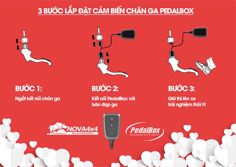 Việc lắp đặt Cảm biến chân ga Ford Ranger hiệu PedalBox cực kỳ dễ dàng và nhanh chóng, chỉ mất khoảng 3 bước. Đầu tiên, bạn chỉ cần kết nối hai giắc cắm của PedalBox vào chân ga điện tử của xe. Sau khi hoàn tất việc lắp đặt, Chip chân ga PedalBox sẽ ngay lập tức sẵn sàng hoạt động. Thiết kế tiện lợi này không chỉ giúp người dùng tiết kiệm thời gian mà còn đảm bảo khả năng hoạt động tối ưu ngay từ lần sử dụng đầu tiên.
