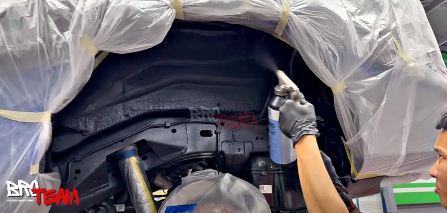 Sử dụng lớp xịt phủ chuyên dụng lên hốc bánh xe Kia Carnival 2025 không chỉ giảm thiểu tiếng ồn mà còn chống rỉ sét và bảo vệ bề mặt khỏi tác hại của axit và nước mưa. Lớp phủ này cũng làm cho việc vệ sinh hốc bánh trở nên dễ dàng hơn, đồng thời tăng cường độ bền cho các bộ phận này.