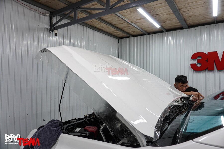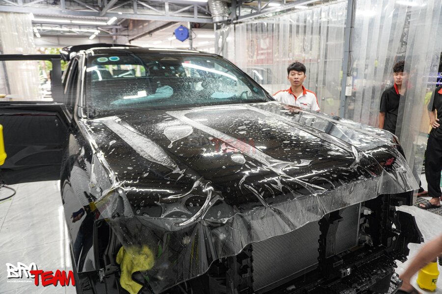 Chuẩn bị bề mặt: Bề mặt sơn xe được làm sạch kỹ lưỡng, loại bỏ hoàn toàn bụi bẩn, dầu mỡ để đảm bảo độ bám dính tốt nhất cho lớp PPF.