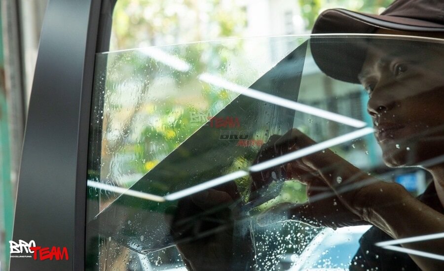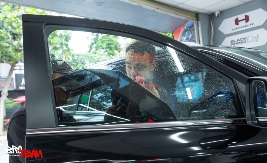 Vệ sinh sau khi thi công: Bề mặt kính được lau chùi sạch sẽ một lần nữa, đảm bảo không lưu lại bụi bẩn, vệt keo, mang lại vẻ ngoài sáng bóng cho xe.