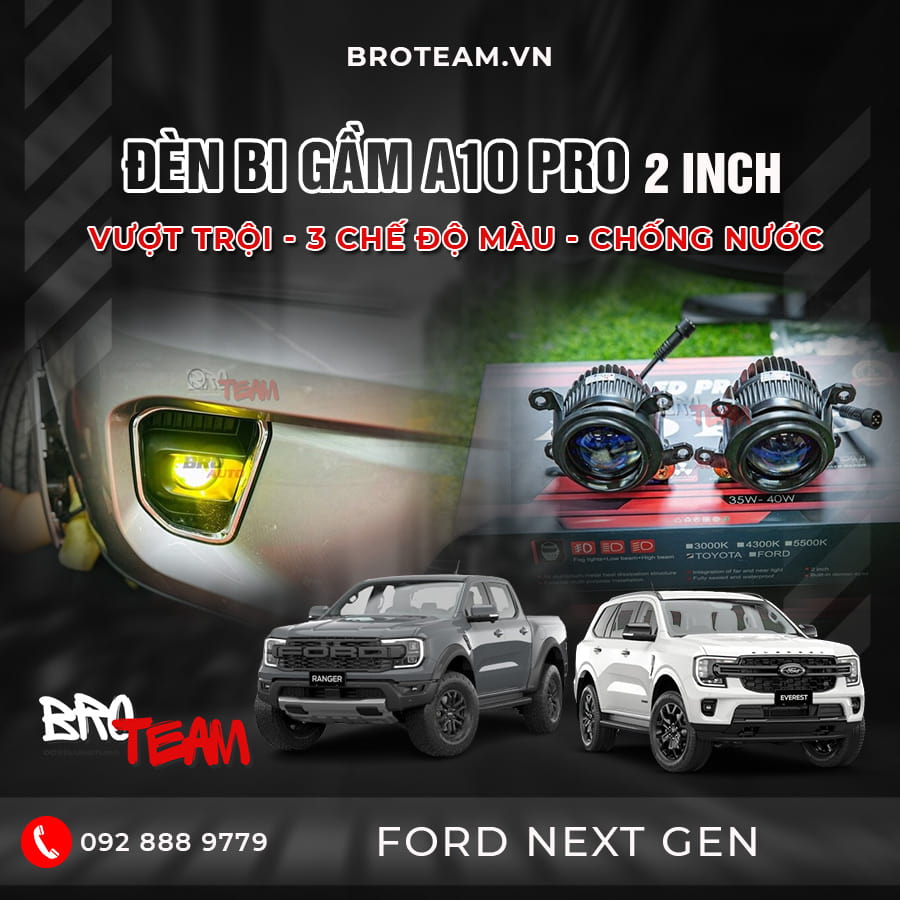 Chủ xế đang tìm kiếm giải pháp tăng sáng hoàn hảo cho xế cưng? Đừng bỏ qua Đèn Bi Gầm A10 Pro - Tuyệt tác công nghệ đỉnh cao từ BRO TEAM! Kích thước 2 inch nhỏ gọn, chip LED Osram siêu sáng, 3 dải nhiệt màu linh hoạt, tiết kiệm năng lượng, chống nước, chống bụi IP68, bảo hành 2 năm... tất cả hội tụ trong A10 Pro, mang đến trải nghiệm lái xe tuyệt vời. Đừng chần chừ, ghé ngay BRO TEAM để lắp đặt Đèn Bi Gầm A10 Pro và bừng sáng mọi hành trình!