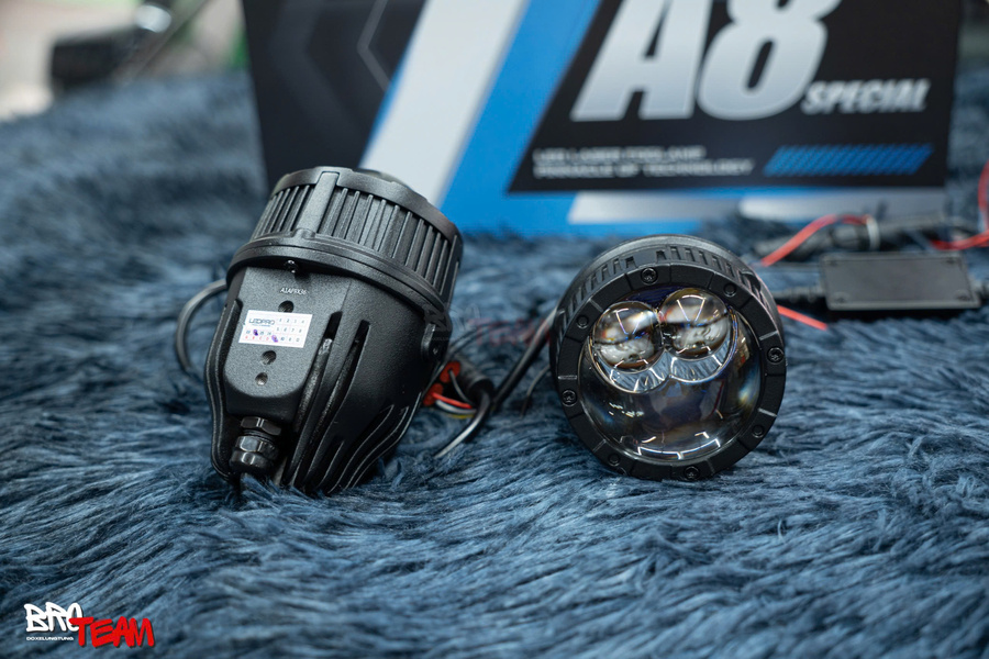 Laser kép siêu sáng: Dù chỉ 2 inch, A8 Special tích hợp đến 2 laser – giúp ánh sáng hội tụ mạnh, chiếu xa ấn tượng và sắc nét trong đêm tối.