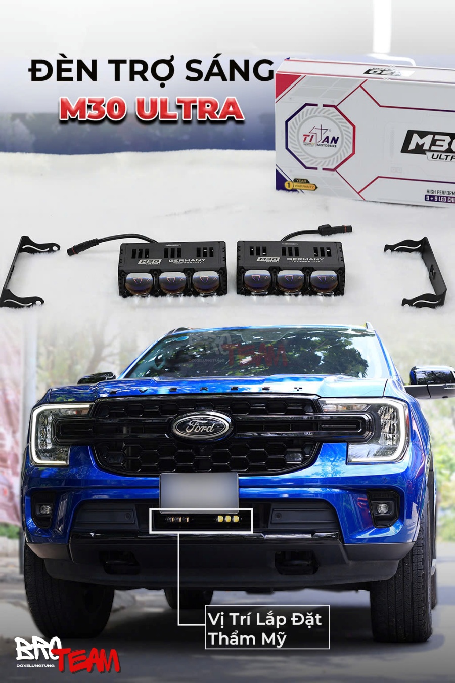 Đèn trợ sáng M30 Ultra là giải pháp chiếu sáng mạnh mẽ, mang đến tầm nhìn vượt trội cho mọi hành trình. Với thiết kế độc đáo, chất liệu nhôm cao cấp và công suất 140W, đèn cung cấp ánh sáng rộng, sắc nét, phù hợp cho cả điều kiện thời tiết khắc nghiệt. Hệ thống tản nhiệt hiệu quả và khả năng chống nước IP68 giúp đèn hoạt động ổn định lâu dài. Nếu bạn muốn nâng cấp xe của mình với đèn trợ sáng chất lượng, đừng quên ghé xưởng độ xe BRO TEAM để trải nghiệm và lắp đặt sản phẩm này ngay hôm nay!