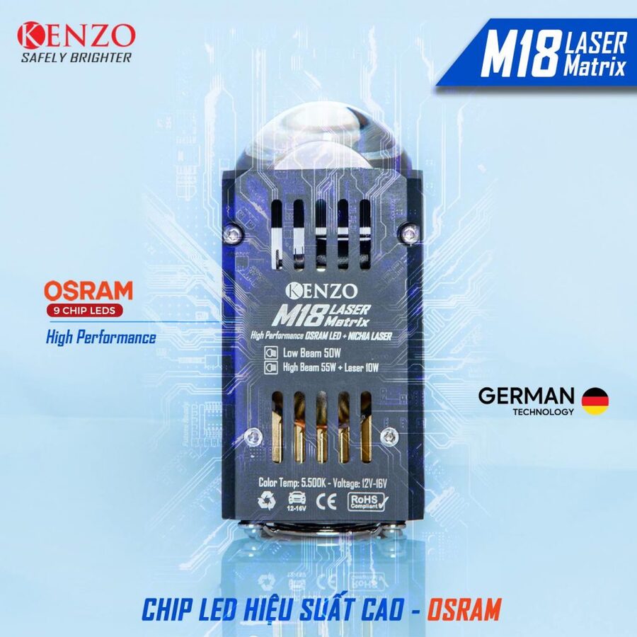 Dù nhỏ gọn, Kenzo M18 Laser Matrix sở hữu sức mạnh chiếu sáng vượt trội, phù hợp cho những ai muốn nâng cấp đèn mà không ảnh hưởng đến thiết kế nguyên bản của xe.