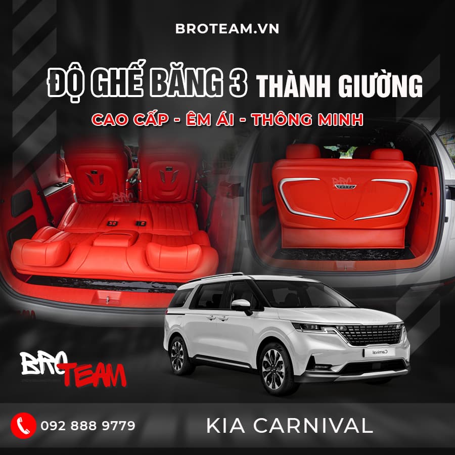 BRO TEAM tự hào mang đến gói độ ghế băng 3 thành giường Kia Carnival, biến chiếc xe MPV đa dụng của bạn thành không gian nghỉ ngơi hoàn hảo cho mọi hành trình.