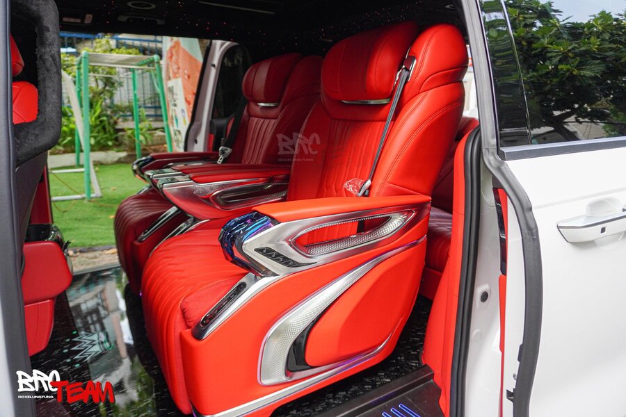 Chuyển đổi cấu trúc ghế: Loại bỏ hàng ghế thứ ba để tạo không gian cho hàng ghế giữa, biến thành cặp ghế VIP kết hợp với con ngựa, tạo ra không gian ngồi đẳng cấp và tiện nghi.