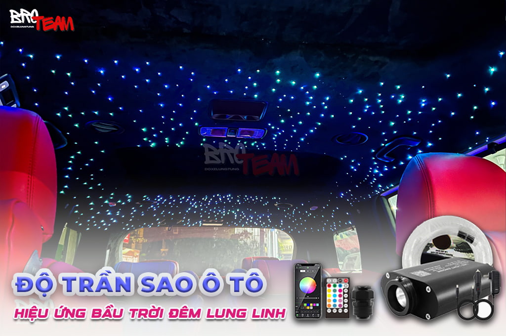 Độ trần sao ô tô là xu hướng nâng cấp nội thất được nhiều chủ xe ưa chuộng nhờ vẻ đẹp huyền ảo và trải nghiệm thư giãn mà nó mang lại. Hệ thống đèn sợi quang tạo hiệu ứng bầu trời đêm lung linh, giúp khoang xe thêm phần sang trọng, cá tính và ấm cúng. Không chỉ nâng tầm thẩm mỹ, trần sao còn giúp giảm căng thẳng khi lái xe và tăng giá trị cho xe khi bán lại. Nếu bạn đang tìm một điểm nhấn độc đáo cho xế yêu, hãy đến ngay BRO TEAM để được tư vấn và thi công trần sao chuyên nghiệp.