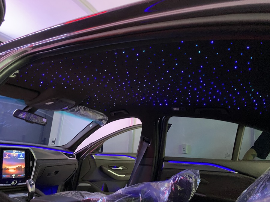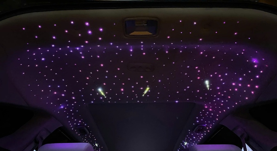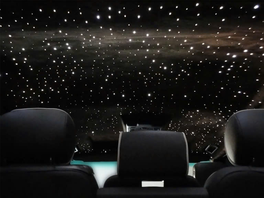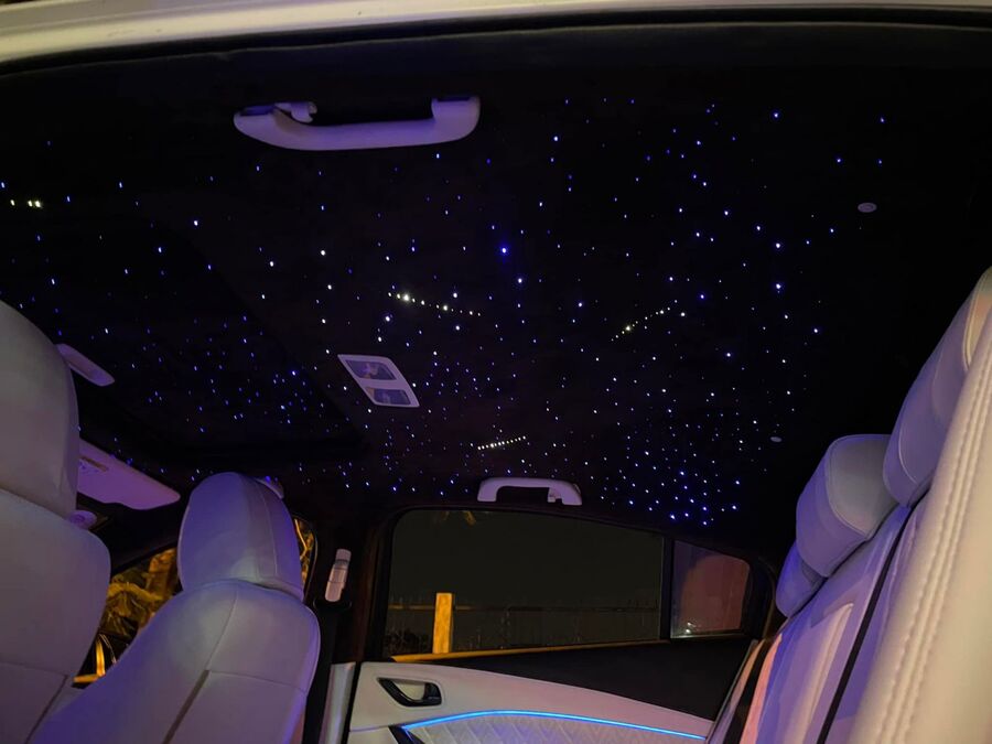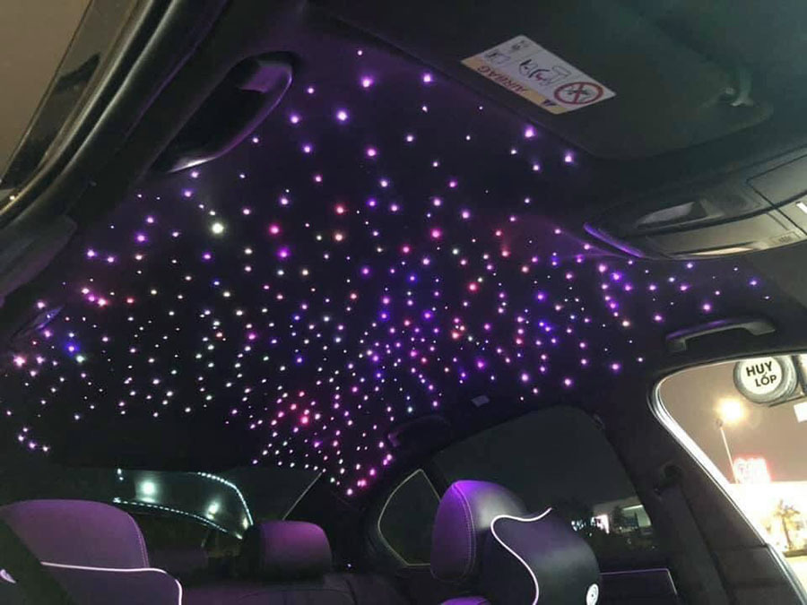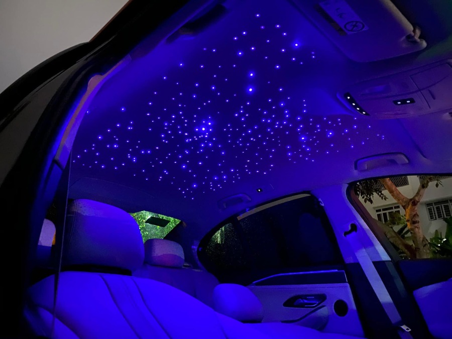 Đặc biệt, loại trần nào cũng có thể thi công: trần nỉ nguyên bản, trần bọc da lộn, trần 5D,… đều có thể nâng cấp với hệ thống đèn sợi quang hiện đại. Với các xe có cửa sổ trời, bạn còn có thể kết hợp hiệu ứng Starlight UV cho phần kính trời – tạo nên không gian lung linh và đậm chất cá nhân. Trần sao rơi không chỉ mang đến vẻ đẹp thẩm mỹ mà còn thể hiện gu thẩm mỹ tinh tế và phong cách riêng biệt của chủ xe.