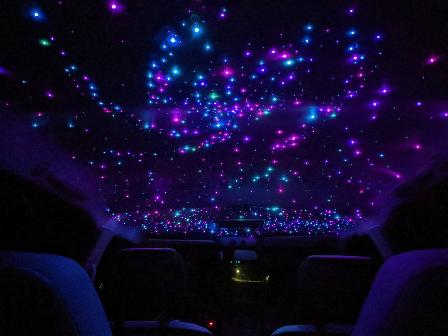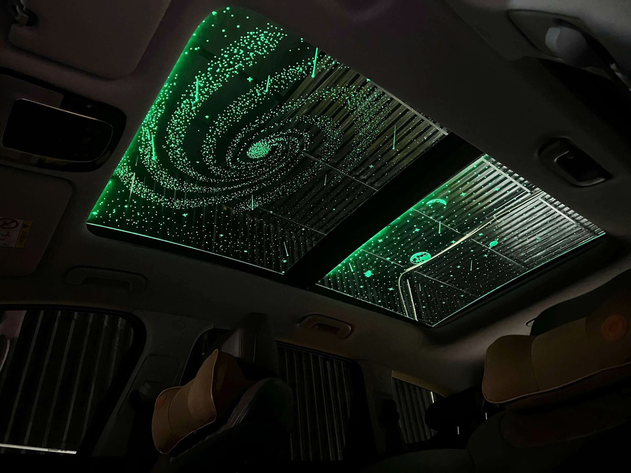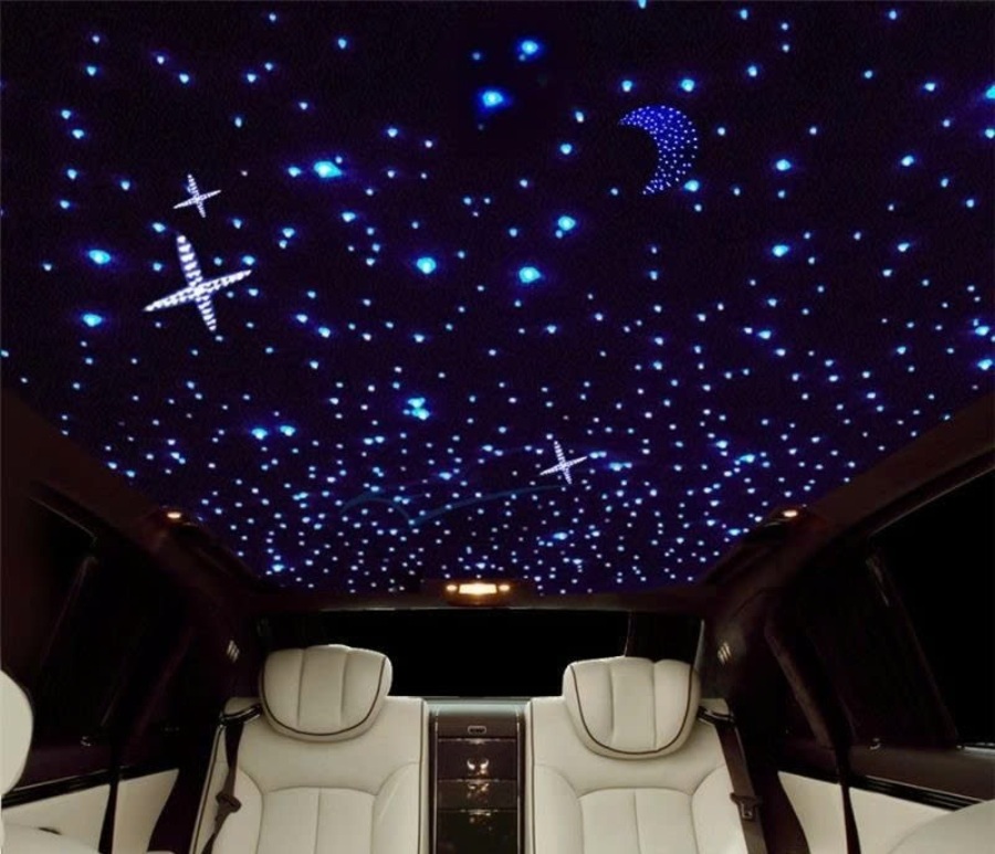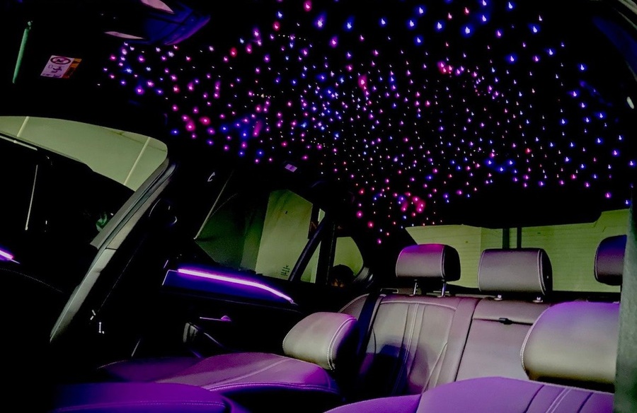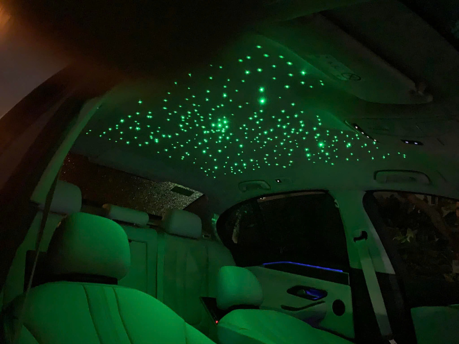Đặc biệt, loại trần nào cũng có thể thi công: trần nỉ nguyên bản, trần bọc da lộn, trần 5D,… đều có thể nâng cấp với hệ thống đèn sợi quang hiện đại. Với các xe có cửa sổ trời, bạn còn có thể kết hợp hiệu ứng Starlight UV cho phần kính trời – tạo nên không gian lung linh và đậm chất cá nhân. Trần sao rơi không chỉ mang đến vẻ đẹp thẩm mỹ mà còn thể hiện gu thẩm mỹ tinh tế và phong cách riêng biệt của chủ xe.