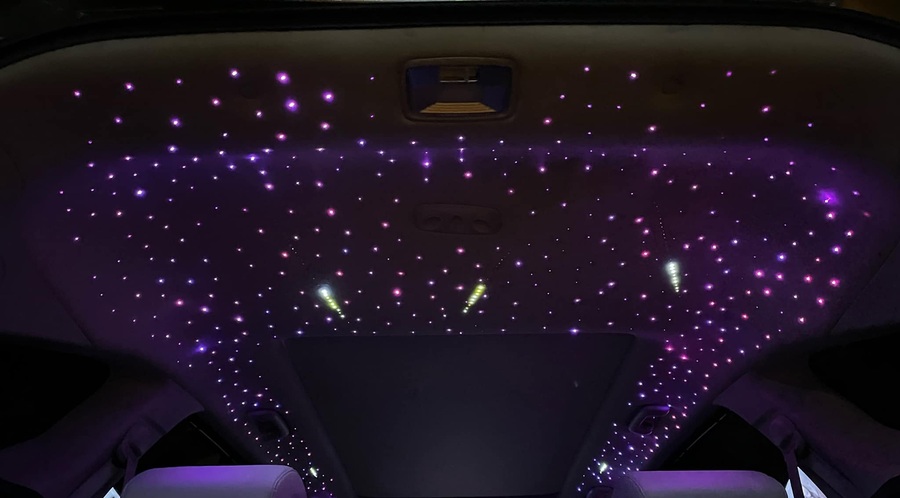 Tiếp theo, hệ thống đèn LED và các sợi quang sẽ được lắp đặt theo thiết kế đã chọn. Các sợi quang sẽ được phân bố hợp lý trên trần xe để đảm bảo ánh sáng được lan tỏa đều và tạo ra hiệu ứng sao rơi lấp lánh hoặc sao băng rơi như mong muốn. Modum điều khiển cũng được kết nối để khách hàng có thể điều chỉnh các hiệu ứng ánh sáng dễ dàng.