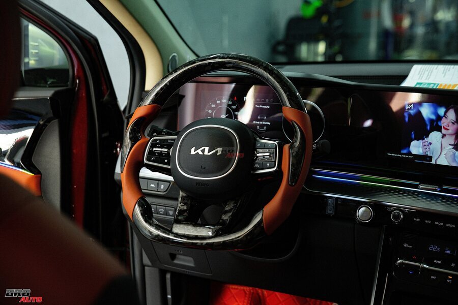 Hơi thở mới cho khoang lái: Độ vô lăng Carbon Kia Carnival tạo điểm nhấn độc đáo, mang đến sự mới mẻ, phấn khích cho mỗi hành trình.