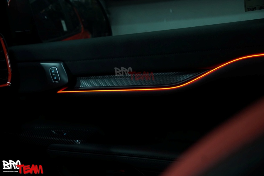 Sức mạnh được nâng cấp nhờ chip chân ga PedalBox Pro, chip DTE PowerControl X, lọc gió K&N, cùng lớp dán PPF Teckwrap bảo vệ tối ưu. Nội thất đẳng cấp với loa B&O, thảm 360 Fiber, vô lăng carbon, ốp nội thất carbon, led nội thất, bọc da lộn trần xe, mang đến không gian sang trọng.