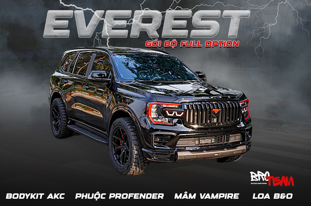 Độ xe Ford Everest chất – Biến Ford Everest thành một tuyệt tác với gói độ toàn diện từ BRO TEAM. Ngoại thất mạnh mẽ với Bodykit AKC V1, mâm Vampire, lốp Toyo, cùng phuộc Profender hạ lùn mang đến vẻ thể thao và vận hành tối ưu. Hệ thống chiếu sáng nâng cấp với đèn Bi Gầm A8, đèn hậu Porsche, tăng cường an toàn và thẩm mỹ.