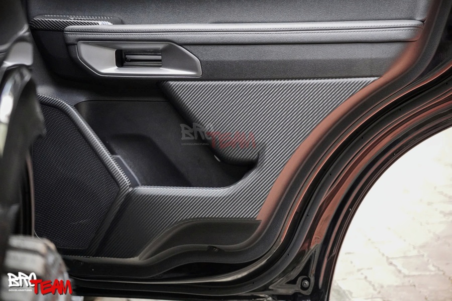 Thiết kế sang trọng: Hoa văn carbon tạo điểm nhấn thể thao, hiện đại cho nội thất xe.