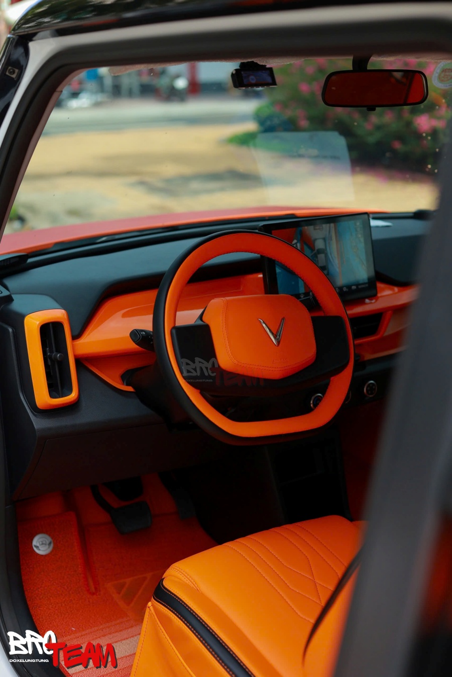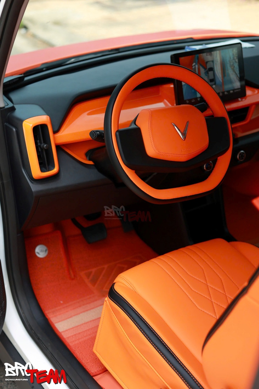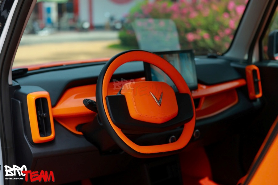 Chiếc bọc vô lăng da Nappa thiết kế riêng cho VinFast VF3 mang đến sự thay đổi mạnh mẽ về cả trải nghiệm cầm lái lẫn tính thẩm mỹ nội thất. Với tone cam chủ đạo hài hòa cùng màu nội thất, bọc vô lăng này không chỉ nâng cao phong cách thể thao, cá tính mà còn thể hiện sự chỉn chu và khác biệt trong từng chi tiết nhỏ.