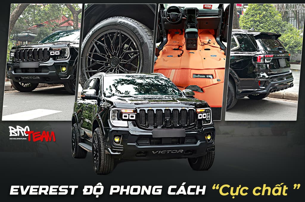 Everest 2025 độ phong cách là lựa chọn lý tưởng cho chủ xe yêu thích vẻ ngoài cá tính và khác biệt. Bộ bodykit Victor V2 kết hợp lưới tản nhiệt kiểu JEEP mang lại diện mạo mạnh mẽ, mâm Vampire 20 inch nổi bật, đèn bi gầm LED A11 Pro giúp tăng sáng an toàn, và thảm sàn 360 Fiber thiết kế chuẩn theo xe. Đến ngay xưởng độ xe BRO TEAM để nâng cấp Everest theo phong cách riêng của bạn.