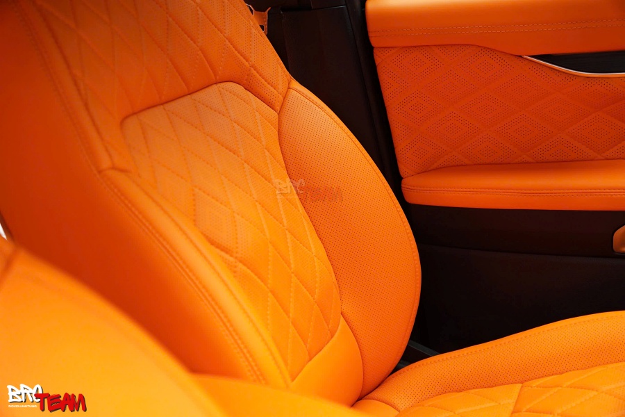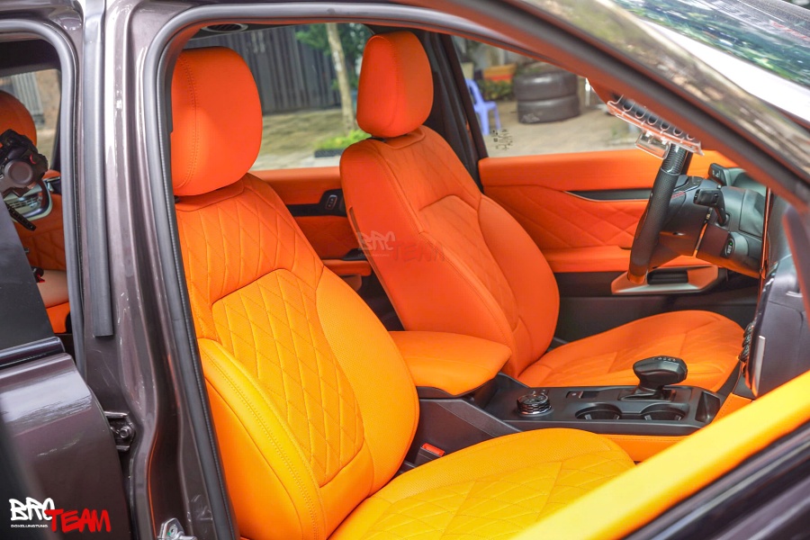 Nội thất da bò Hermes cao cấp cho Ford Everest mang đến sự khác biệt rõ rệt, nâng tầm không gian bên trong trở nên sang trọng, đẳng cấp và đầy cá tính. Chất liệu da bò thật được xử lý tinh xảo, bề mặt mềm mại nhưng vẫn đảm bảo độ bền, dễ vệ sinh và thoáng khí. Tông màu cam Hermes nổi bật kết hợp cùng đường chỉ may tỉ mỉ dạng caro kim cương tạo điểm nhấn mạnh mẽ, cuốn hút ngay từ cái nhìn đầu tiên.