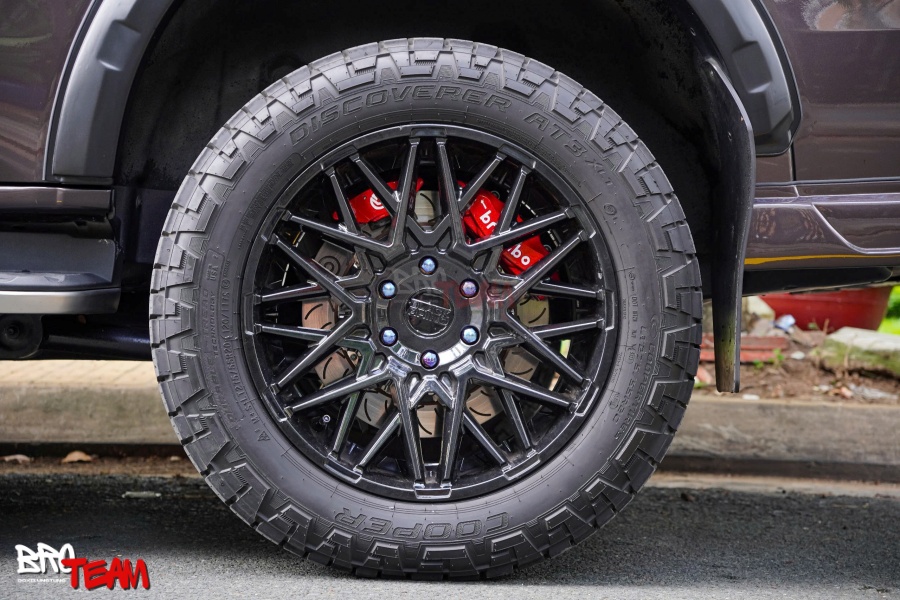 Tăng độ bám và kiểm soát khi off-road: Khi kết hợp với bộ mâm lớn và lốp địa hình như Cooper Discoverer AT3 XLT, Brembo hỗ trợ kiểm soát tối ưu khi di chuyển trên các cung đường xấu, leo dốc hoặc đổ đèo.