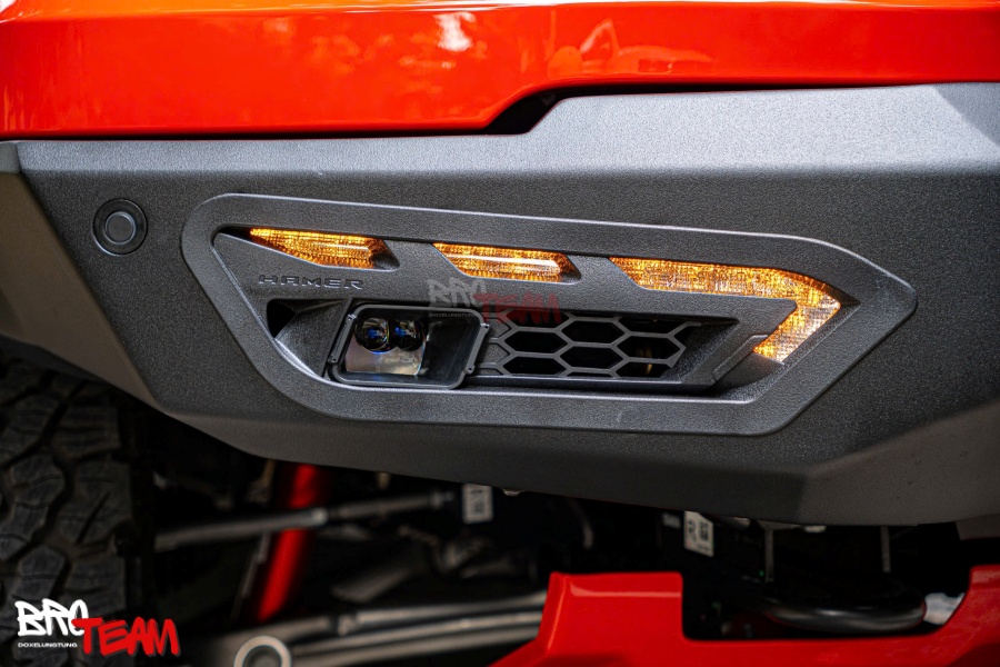 Thiết kế: Cản trước Hamer Atlas mang thiết kế hiện đại, phong cách với các đường nét mảnh, chi tiết độc đáo, tạo điểm nhấn mạnh mẽ cho xe.