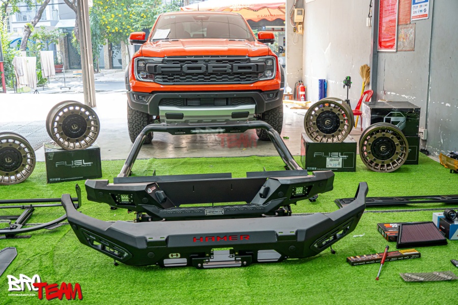 Ford Ranger Raptor 2024 độ full là gói nâng cấp hoàn hảo, mang đến diện mạo hầm hố và khả năng vận hành vượt trội. Bộ cản trước Hamer Atlas và cản sau Nova Series không chỉ tăng tính thể thao mà còn bảo vệ xe tối ưu. Thanh thể thao Night Fury, mâm Fuel Militia, và đèn LED định vị mặt ca lăng tạo điểm nhấn độc đáo. Ford Ranger Raptor 2024 độ full nội thất với vô lăng Carbon D-Cut, ghế chỉnh điện Vsteel, và loa trung tâm JBL mang đến sự tiện nghi vượt bậc. Dán tem Raptor phản quang, phủ Ceramic GB, và sơn giáp gầm hoàn thiện vẻ ngoài mạnh mẽ. Đến ngay BRO TEAM để trải nghiệm dịch vụ độ xe chuyên nghiệp, biến chiếc Ford Ranger Raptor của bạn thành biểu tượng cá tính đẳng cấp!