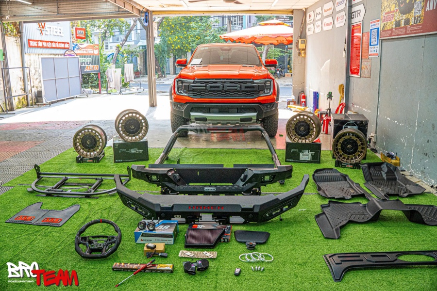 Ford Ranger Raptor 2024 độ full mang đến phong cách hầm hố và hiệu năng vượt trội. Cản trước Hamer Atlas, cản sau Nova Series cùng mâm Fuel Militia tạo vẻ ngoài mạnh mẽ. Nội thất nổi bật với vô lăng Carbon D-Cut, ghế chỉnh điện Vsteel và loa trung tâm JBL, mang lại tiện nghi vượt trội. Dán tem Raptor phản quang, phủ Ceramic GB, và sơn giáp gầm hoàn thiện sự đẳng cấp. BRO TEAM sẽ giúp bạn nâng cấp chiếc Raptor lên một tầm cao mới. Không chỉ đẹp mắt, các phụ kiện này còn tăng cường khả năng off-road, bảo vệ xe tối đa và mang đến những trải nghiệm lái đầy phấn khích. Liên hệ ngay với BRO TEAM để được tư vấn và lắp đặt chuyên nghiệp!