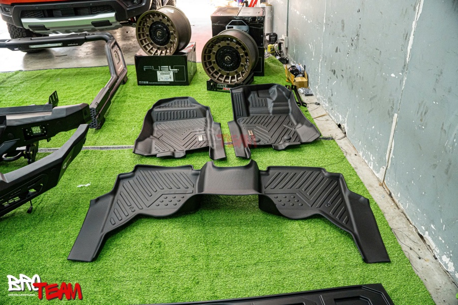 Thảm lót sàn khuôn đúc cho Ford Ranger Raptor mang lại sự tiện lợi và bảo vệ tối đa cho xe, giữ cho không gian nội thất luôn sạch sẽ và bền bỉ.