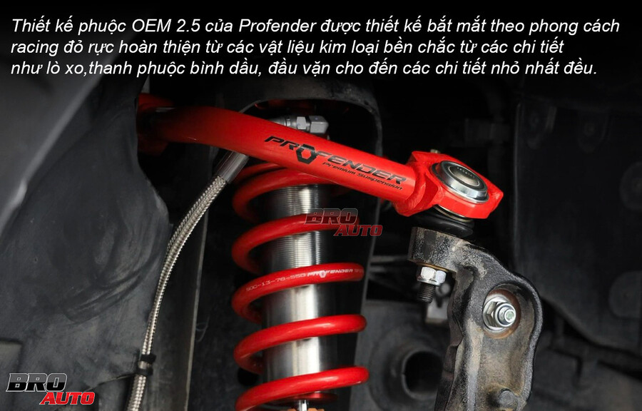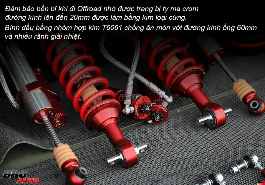 Bình dầu phụ hiệu suất cao: Tăng dung tích dầu, hạn chế sôi dầu, giúp phuộc hoạt động ổn định liên tục trong điều kiện tải nặng hoặc nhiệt độ cao.