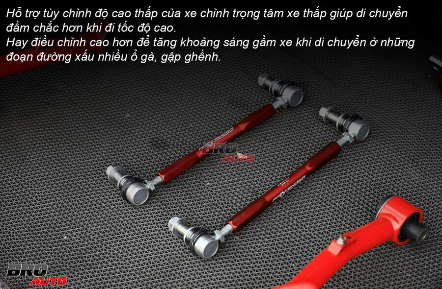 Khả năng nâng gầm linh hoạt: Điều chỉnh chiều cao lên đến ~145mm, phù hợp xe zin hoặc xe có thêm tải như cản, tời.