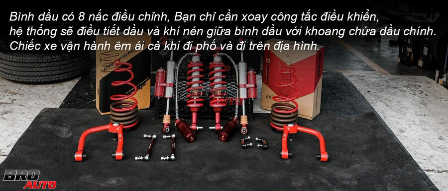 Tối ưu vận hành đa địa hình: Hệ thống điều chỉnh 8 nấc cho phép tinh chỉnh độ cứng/mềm theo từng điều kiện sử dụng, từ đường phố êm ái đến off-road khắc nghiệt.