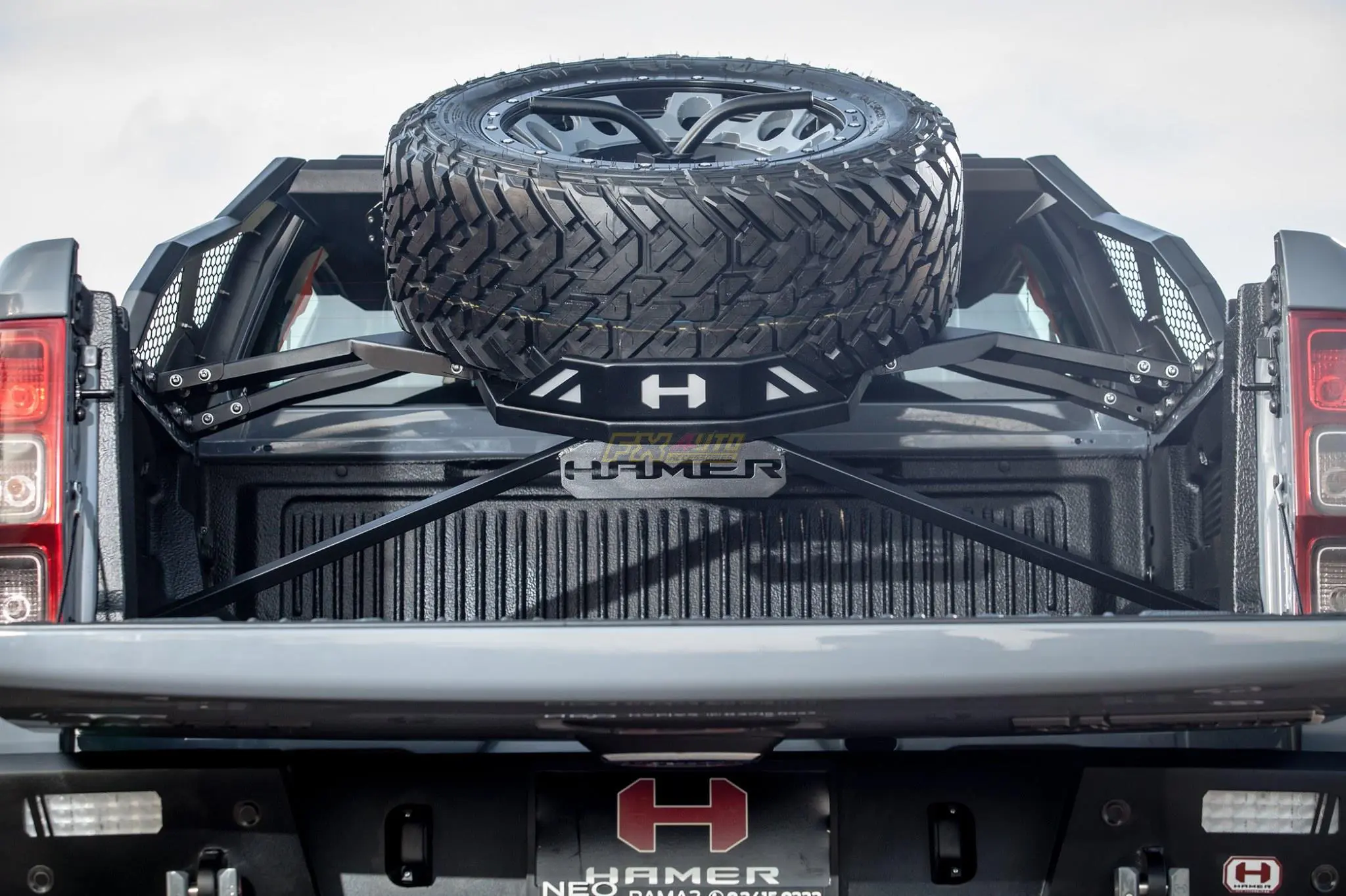 Khung Hamer Aluminum được chế tạo từ nhôm cường lực, có trọng lượng tối ưu nhưng vẫn đảm bảo sự chắc chắn để gắn lều nóc, phụ kiện dã ngoại hoặc hành lý. Cấu trúc mô-đun linh hoạt, tháo lắp nhanh và tương thích tốt với thùng xe Raptor. Kiểu dáng thể thao, sắc nét giúp tổng thể xe trở nên mạnh mẽ và tiện dụng hơn cho các chuyến đi địa hình.