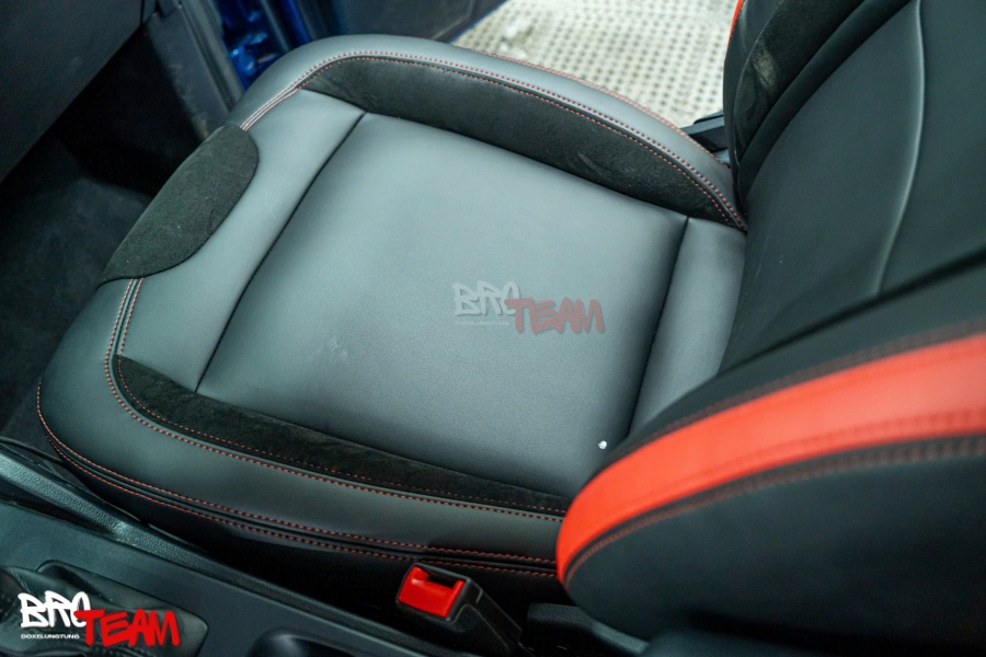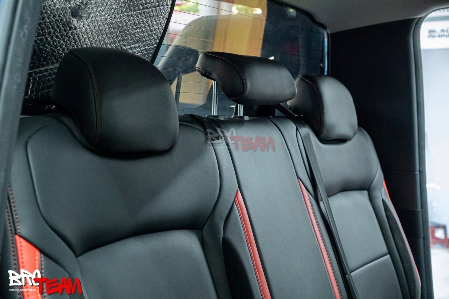 Bọc ghế da Nappa giúp không gian nội thất trở nên cao cấp và êm ái hơn hẳn so với da công nghiệp nguyên bản. Chất da Nappa thật mềm, mịn, thoáng khí, tạo cảm giác dễ chịu trong mọi điều kiện thời tiết. Kết hợp cùng trần da Alcantara – loại vật liệu thường thấy trên siêu xe – không chỉ tăng khả năng cách âm mà còn giúp khoang lái trở nên sang trọng, hiện đại và đậm chất thể thao.