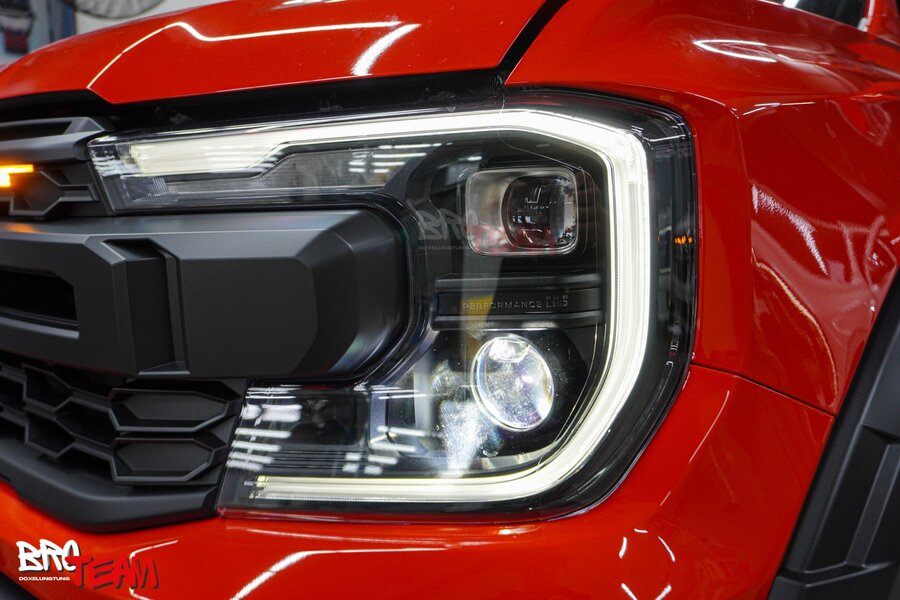 Thiết kế chuẩn Form: Đèn LED định vị mặt ca lăng Ford Raptor được thiết kế tinh tế, ôm sát theo từng đường nét của xe, mang đến sự hài hòa và sang trọng cho tổng thể ngoại thất.