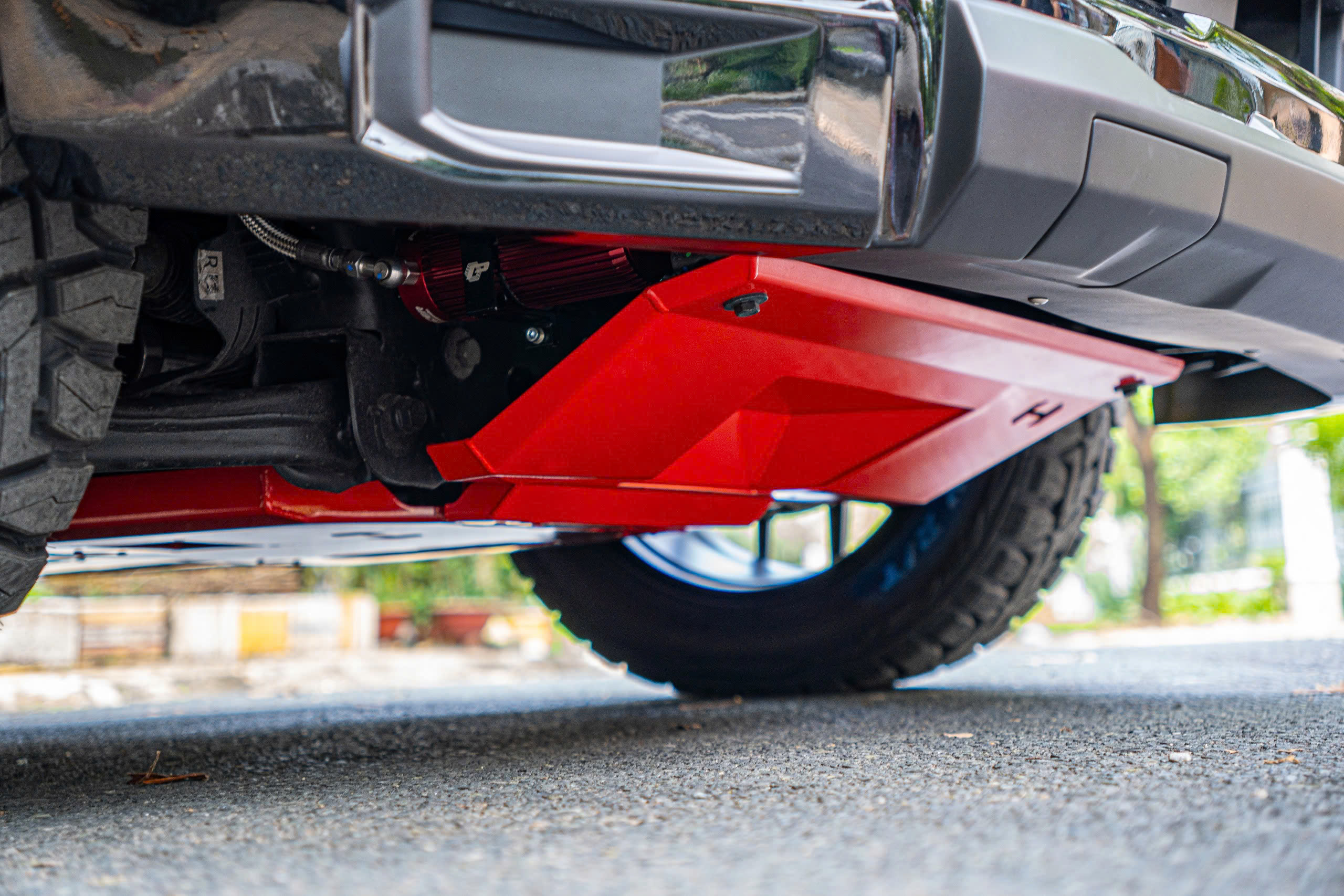 Tăng tính thẩm mỹ: Màu đỏ đặc trưng, phối logo Hamer nổi bật tạo điểm nhấn đậm chất thể thao cho phần dưới gầm xe. Không chỉ mạnh mẽ về công năng, giáp gầm còn giúp ngoại hình xe trở nên cứng cáp và cá tính hơn.
