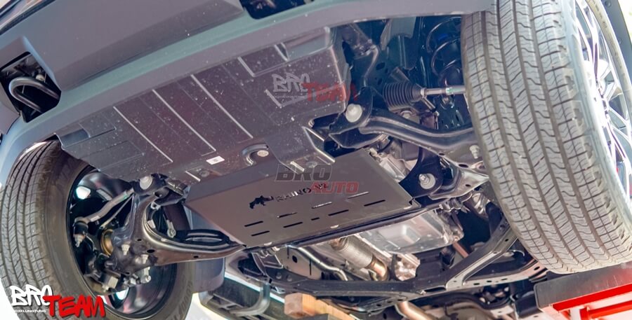 Chinh phục mọi địa hình: Giáp gầm Rhino bảo vệ thước lái gia cố thêm sự tự tin cho hành trình khám phá mọi cung đường, dù là những cung đường off-road đầy thử thách.