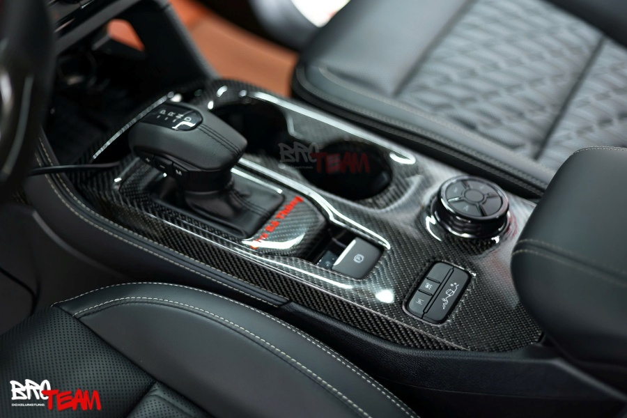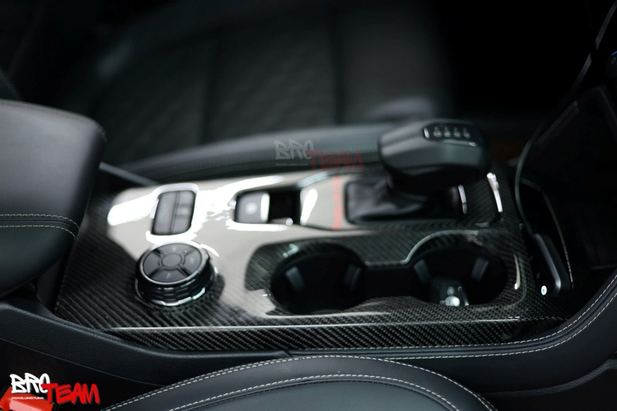 Thẩm mỹ sang trọng: Bề mặt vân carbon phối da cao cấp, tông màu hài hòa giúp khoang xe thêm phần đẳng cấp.