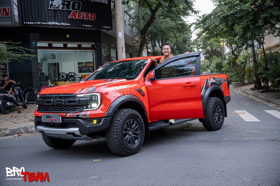 Dịch vụ dán decal carbon 4 tappi cửa không chỉ nâng cấp diện mạo cho xe mà còn bảo vệ và tăng cường giá trị sử dụng cho Ford Raptor.