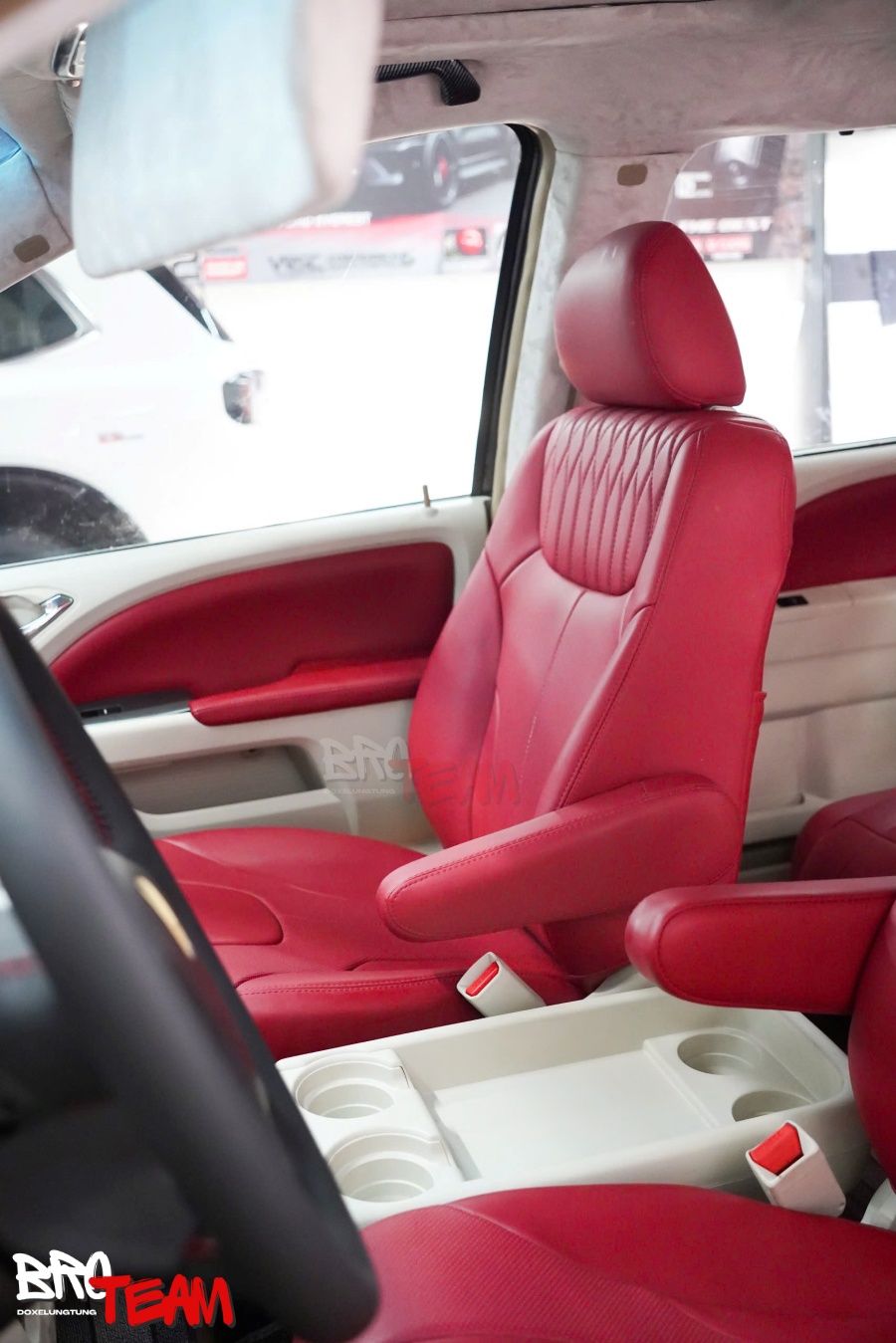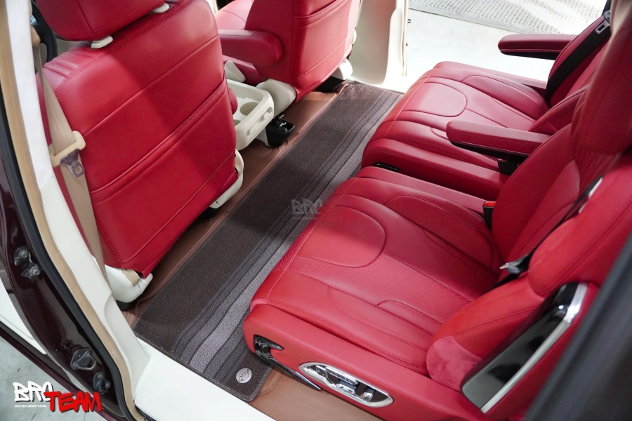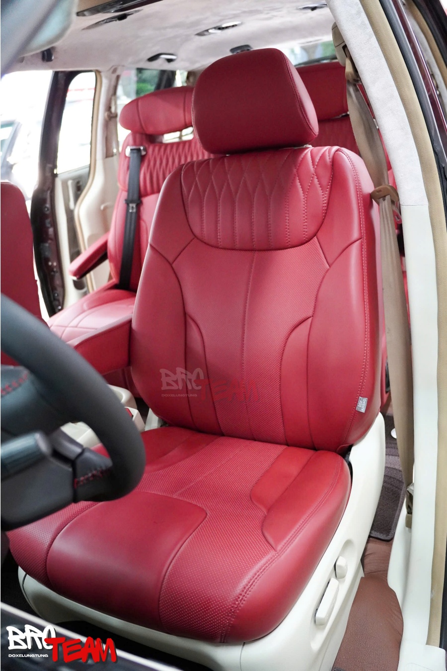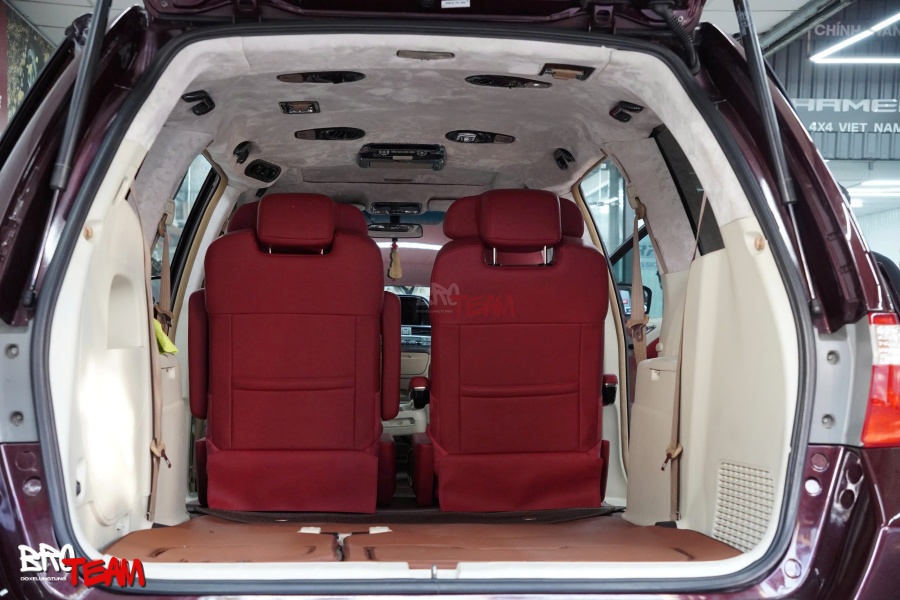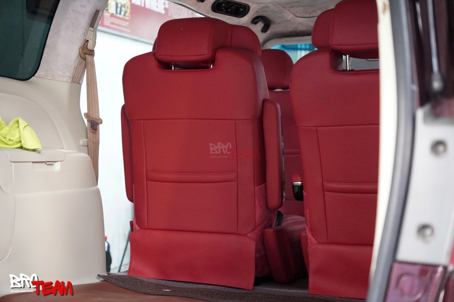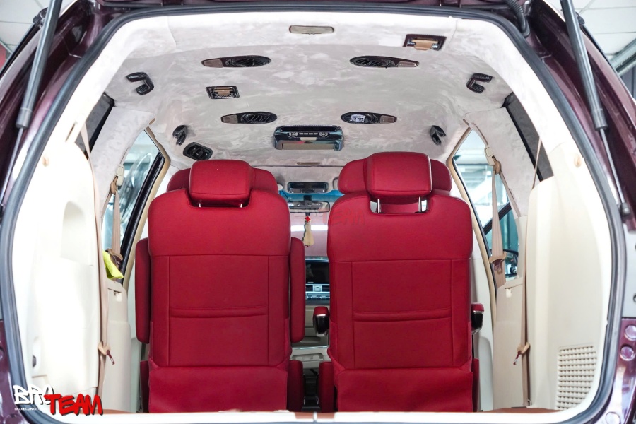 Bước vào khoang cabin, sự thay đổi khiến bất kỳ ai cũng phải ấn tượng. Toàn bộ không gian được bọc da đỏ cao cấp, mang đến cảm giác vừa thể thao, vừa toát lên sự đẳng cấp hiếm thấy trên một mẫu MPV gia đình. Màu đỏ nổi bật kết hợp cùng những đường chỉ may tinh xảo tạo nên hiệu ứng thị giác mạnh mẽ, đồng thời tăng thêm nét cá tính cho tổng thể nội thất.