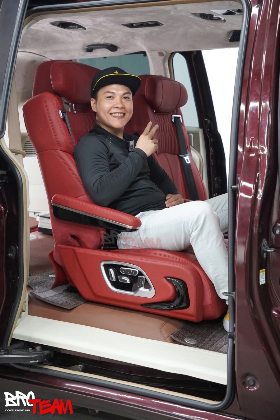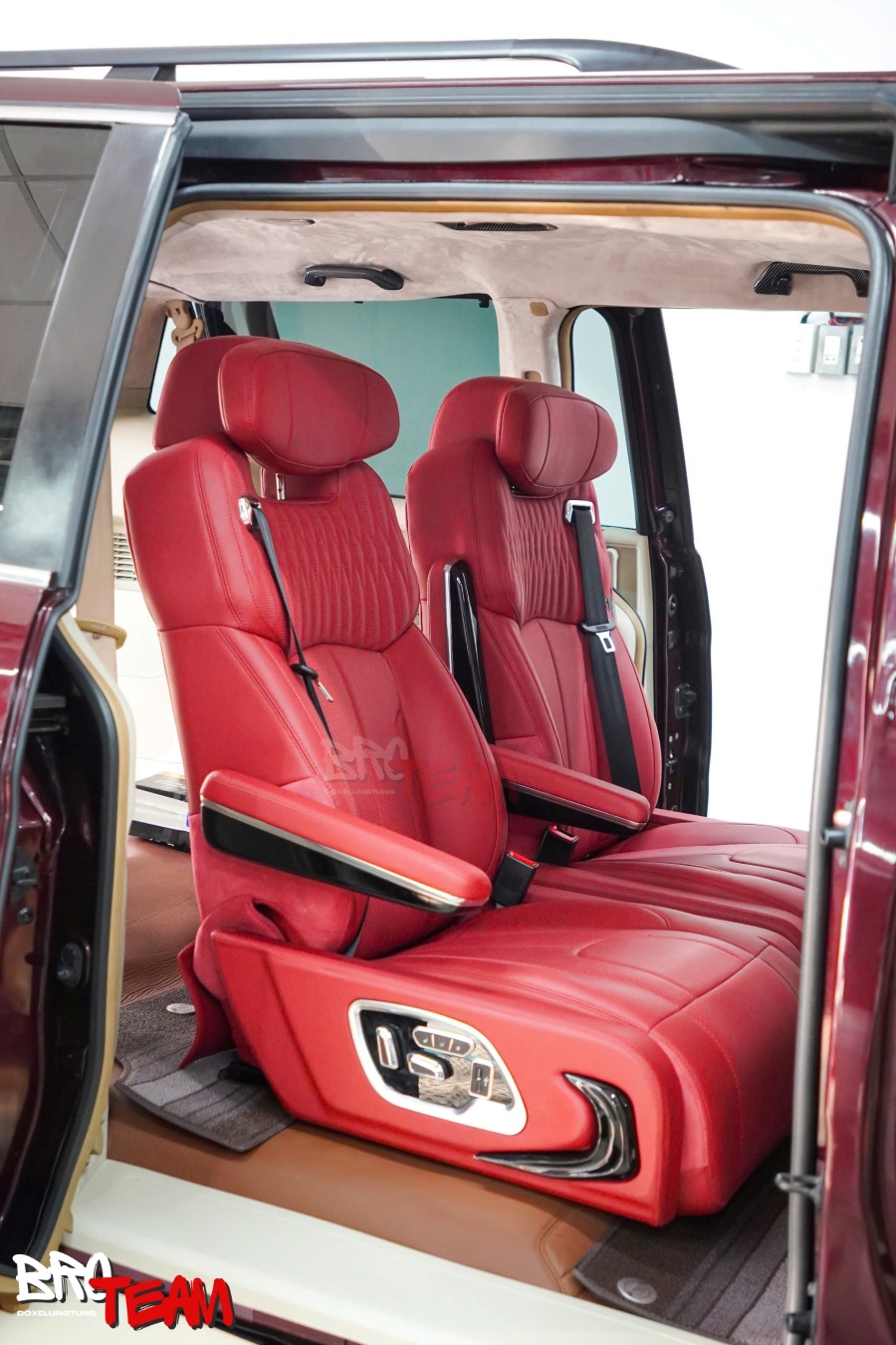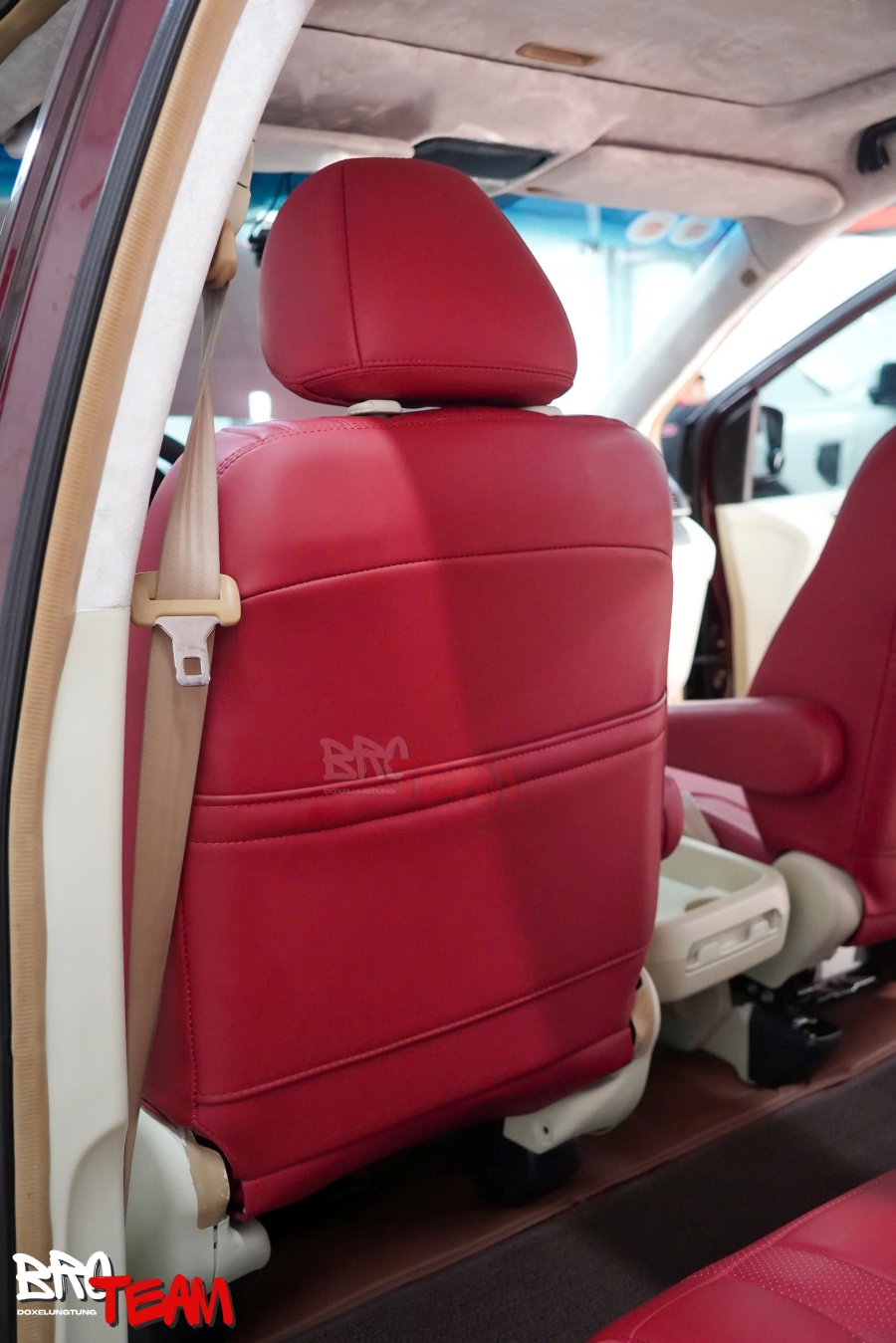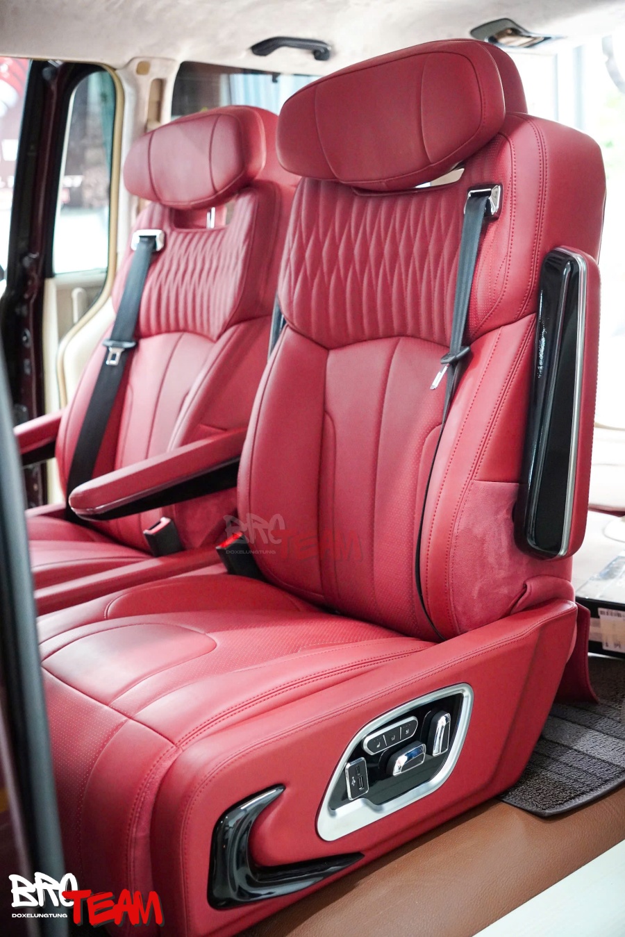 Bước vào khoang cabin, sự thay đổi khiến bất kỳ ai cũng phải ấn tượng. Toàn bộ không gian được bọc da đỏ cao cấp, mang đến cảm giác vừa thể thao, vừa toát lên sự đẳng cấp hiếm thấy trên một mẫu MPV gia đình. Màu đỏ nổi bật kết hợp cùng những đường chỉ may tinh xảo tạo nên hiệu ứng thị giác mạnh mẽ, đồng thời tăng thêm nét cá tính cho tổng thể nội thất.