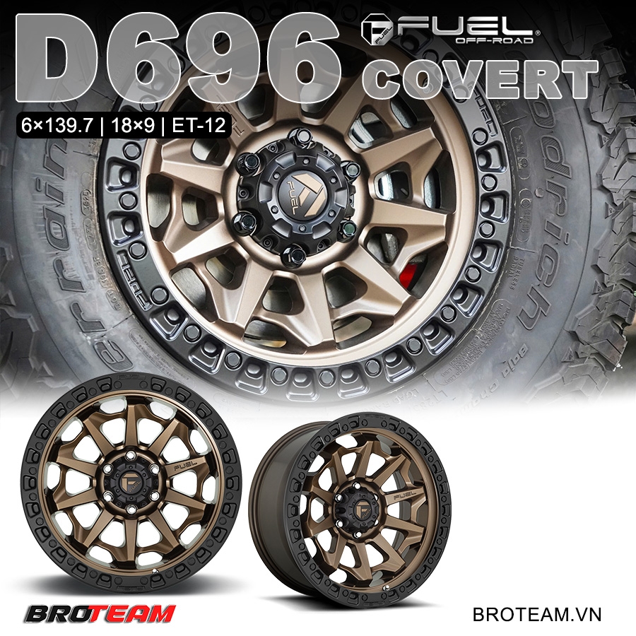 Mâm Fuel Covert D696 được thiết kế dành cho các dòng bán tải và SUV sử dụng hệ dẫn động 4WD, đảm bảo độ cứng vững cao và khả năng chịu tải tốt khi vận hành trên nhiều điều kiện địa hình.