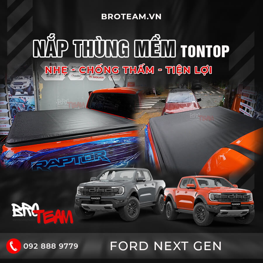 Nắp thùng mềm Tontop cho Ford Ranger & Ranger Raptor 2023 là một phụ kiện đáng đầu tư cho xe bán tải, kết hợp hoàn hảo giữa tính tiện lợi, thẩm mỹ và độ bền. Với khả năng đóng mở dễ dàng, trọng lượng nhẹ, lắp đặt nhanh chóng, cùng tính năng chống trộm và tối ưu không gian, sản phẩm này đáp ứng tốt nhu cầu của cả người dùng cá nhân lẫn doanh nghiệp. Nếu bạn đang tìm kiếm một giải pháp bảo vệ thùng xe hiệu quả mà vẫn giữ được phong cách, Tontop chắc chắn là cái tên không thể bỏ qua. Hãy đến BRO TEAM – xưởng độ xe uy tín, để trải nghiệm dịch vụ lắp đặt chuyên nghiệp và tư vấn tận tình, giúp "xế yêu" của bạn vừa tiện dụng vừa đẳng cấp!