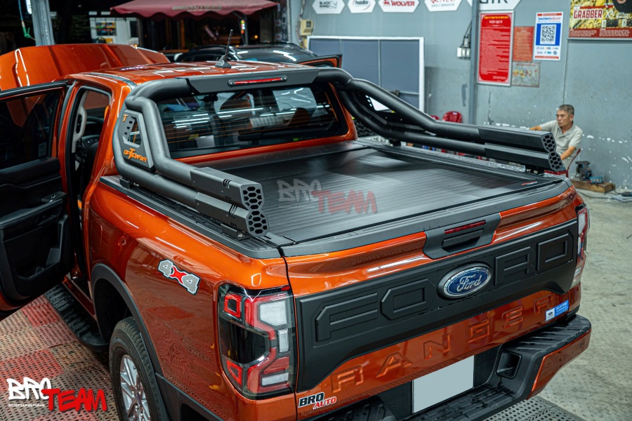 Thiết kế liền khối theo form xe: Các đường nét mềm mại, ăn khớp hoàn hảo với dáng xe Ranger, tạo sự cân đối và tăng tính thẩm mỹ tổng thể.