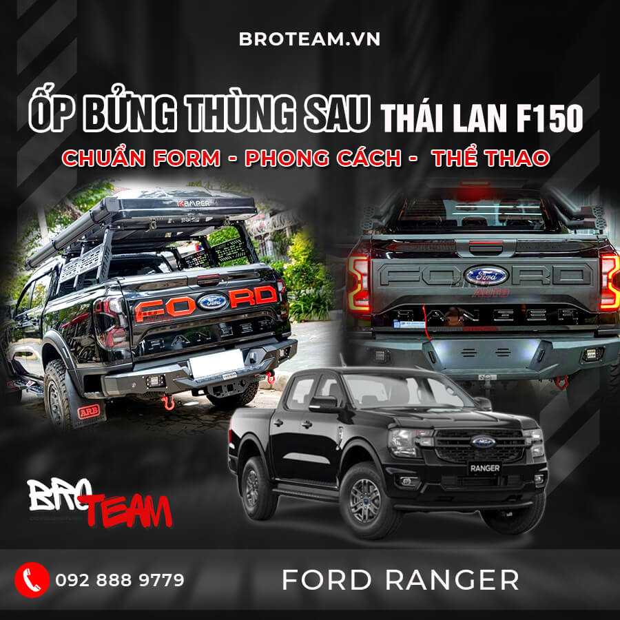 Ốp Bửng Thùng Sau Thái Theo Xe Ford Ranger 2014-2023 mang đến diện mạo mạnh mẽ, phong cách F-150 độc đáo. Với chất liệu nhựa ABS cao cấp, sản phẩm giúp bảo vệ thùng sau khỏi trầy xước, tăng độ bền và thẩm mỹ cho xe. Ốp Bửng Thùng Xe Ford Ranger Thiết kế chuẩn form, dễ dàng lắp đặt, ốp bửng còn nâng tầm phong cách thể thao và cá tính cho xế yêu. Liên hệ BRO TEAM ngay để nâng cấp Ford Ranger của bạn lên một tầm cao mới!