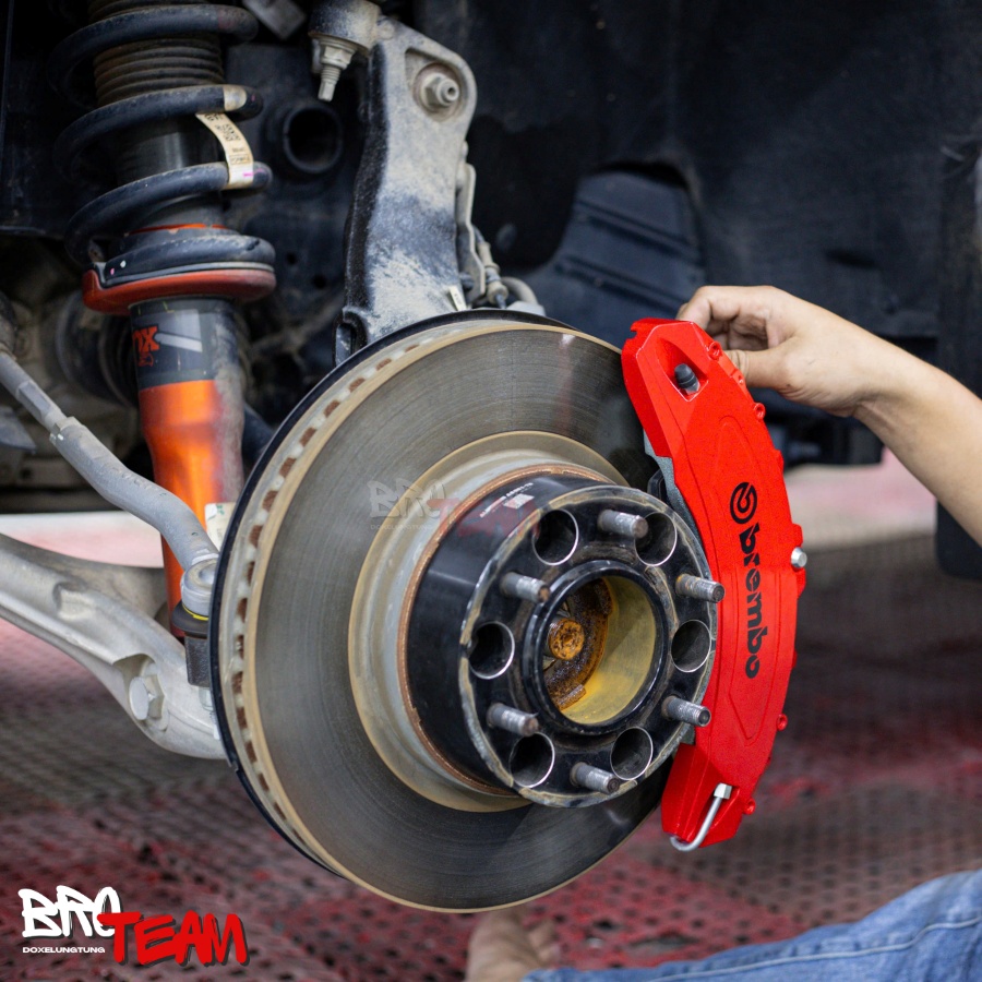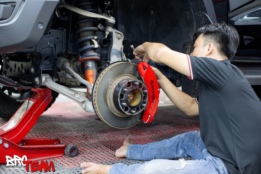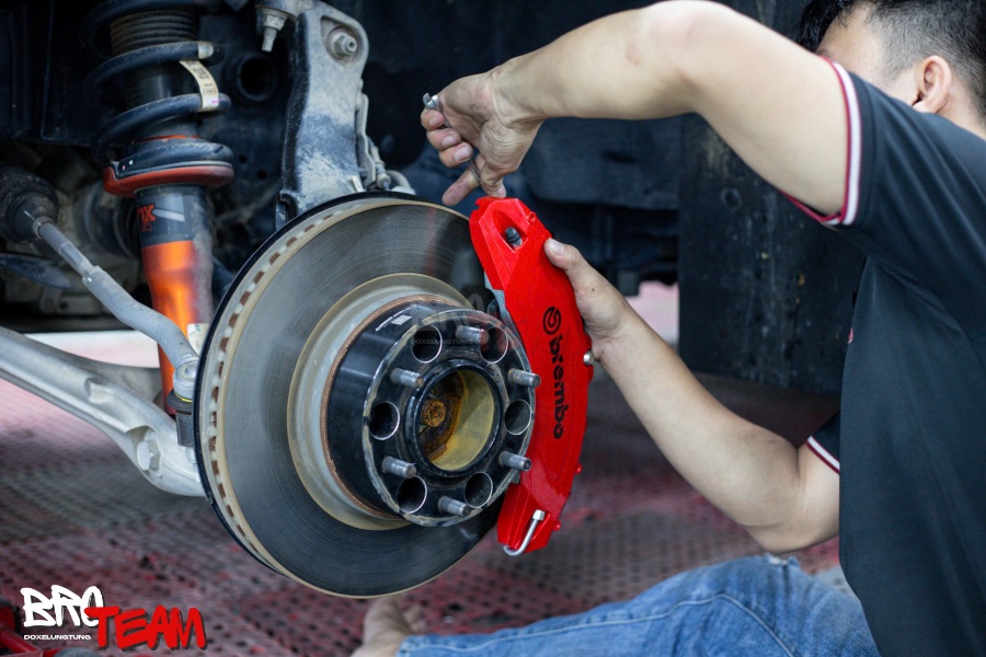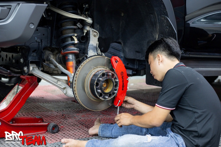 Việc lắp đặt ốp má phanh Brembo trên Ford Raptor rất đơn giản, có thể thực hiện trong khoảng 15–20 phút và hoàn toàn không cần can thiệp hệ thống phanh.