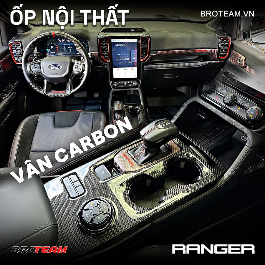 Ốp nội thất vân carbon Ford Ranger mang lại vẻ đẹp nổi bật mà còn giúp các chi tiết nội thất bền bỉ hơn trong suốt quá trình sử dụng. Từng mảng ốp được thiết kế trùng khớp giúp tổng thể liền mạch và sang trọng, tạo cảm giác mới mẻ ngay khi bước vào xe. Muốn tối ưu cả thẩm mỹ lẫn độ bền, bạn có thể ghé BRO TEAM để được tư vấn và lắp đặt đúng chuẩn.