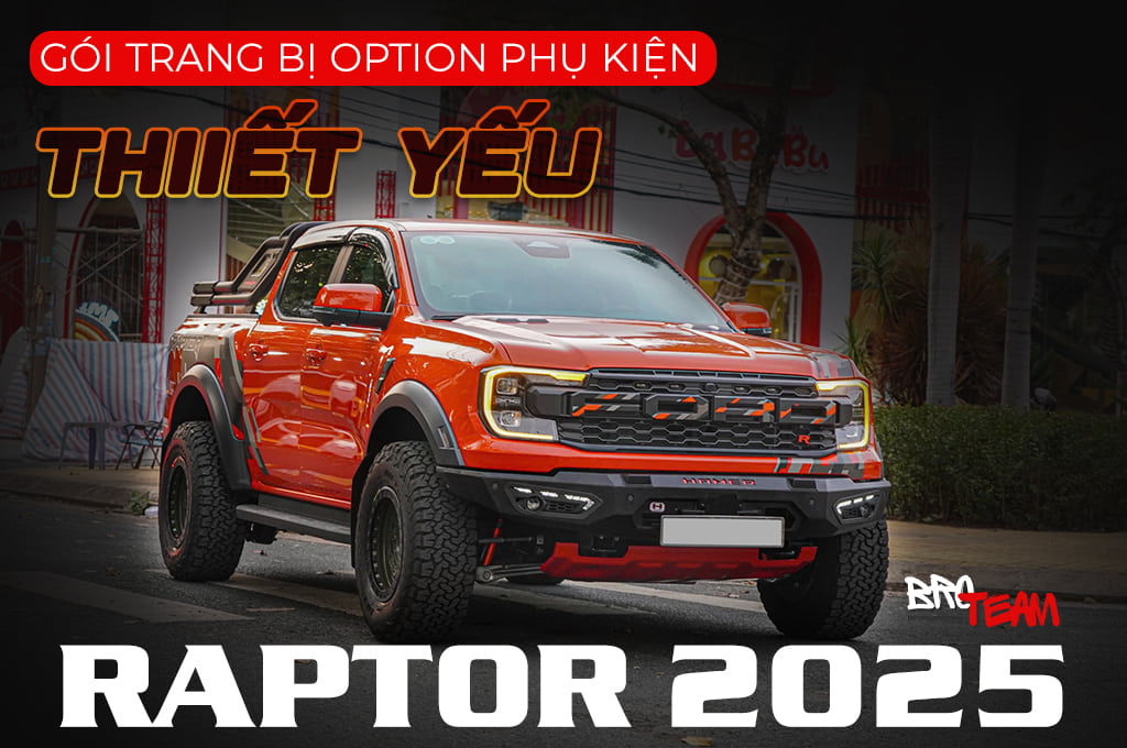 Gói trang bị option phụ kiện xe Ford Raptor 2025 quan trọng nhất chính là những nâng cấp bạn không thể bỏ qua để tăng độ "chiến" và bảo vệ tối đa cho xế cưng. Từ ngoại thất mạnh mẽ với dán PPF bảo vệ sơn, phủ gầm, dán phim cách nhiệt 3M, đèn gầm 2 inch pas, lưới bảo vệ két nước đến tiện nghi như nắp thùng cuộn điện, ty hạ bửng, spacer tăng bề thế. Bên trong, sự thoải mái được nâng cấp với ghế chỉnh điện hàng 2, loa B&O sống động và Androibox BS10 thông minh. Muốn chiếc Raptor của bạn vừa ngầu, vừa tiện nghi? Ghé ngay BRO TEAM – nơi hiện thực hóa mọi ý tưởng độ xe chất lừ!
